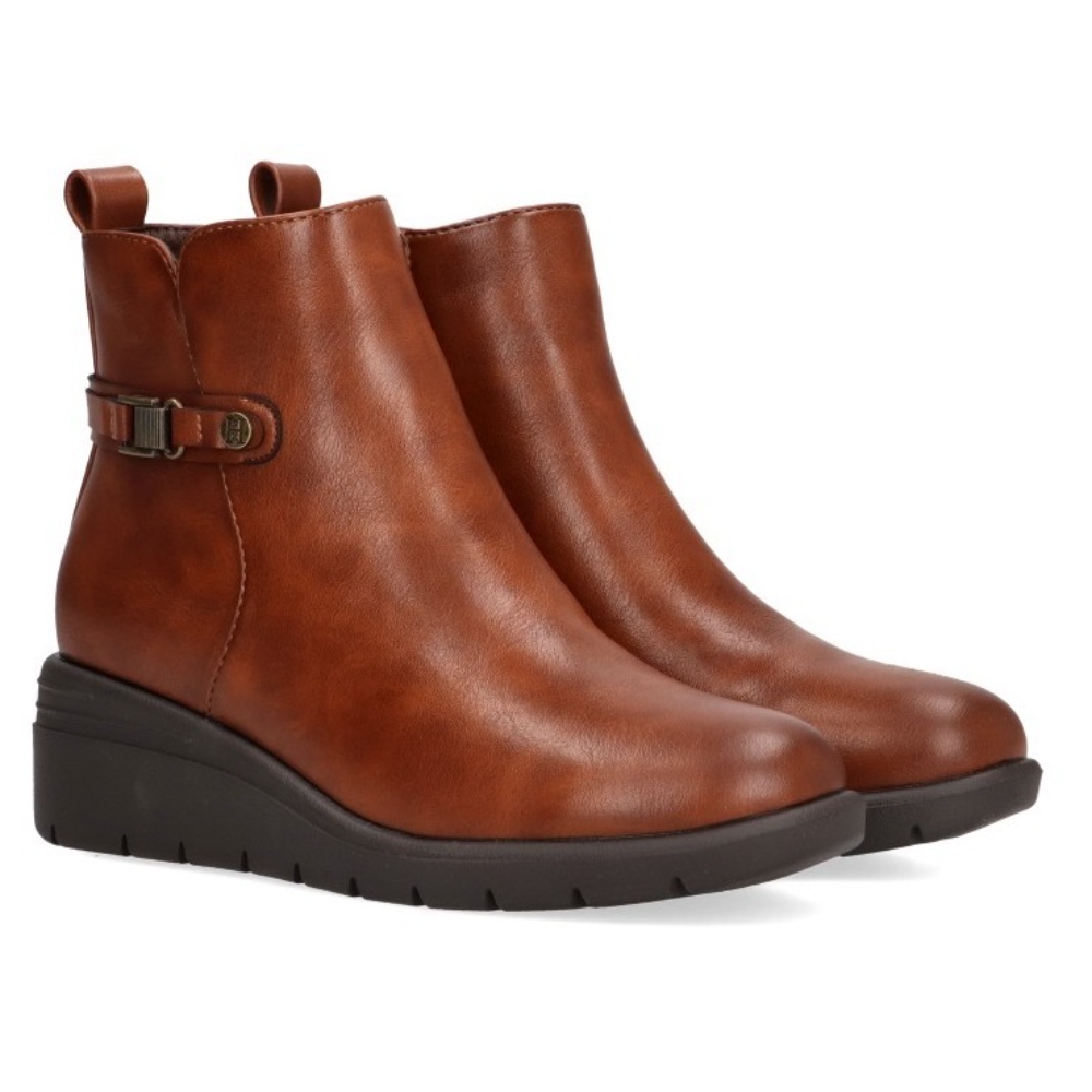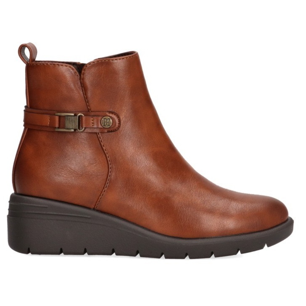 Botin con cuña baja y cremallera lateral de la marca Hispaflex para mujer- Color cuero