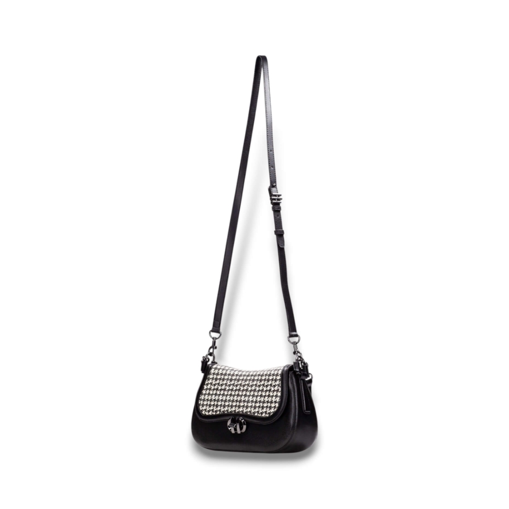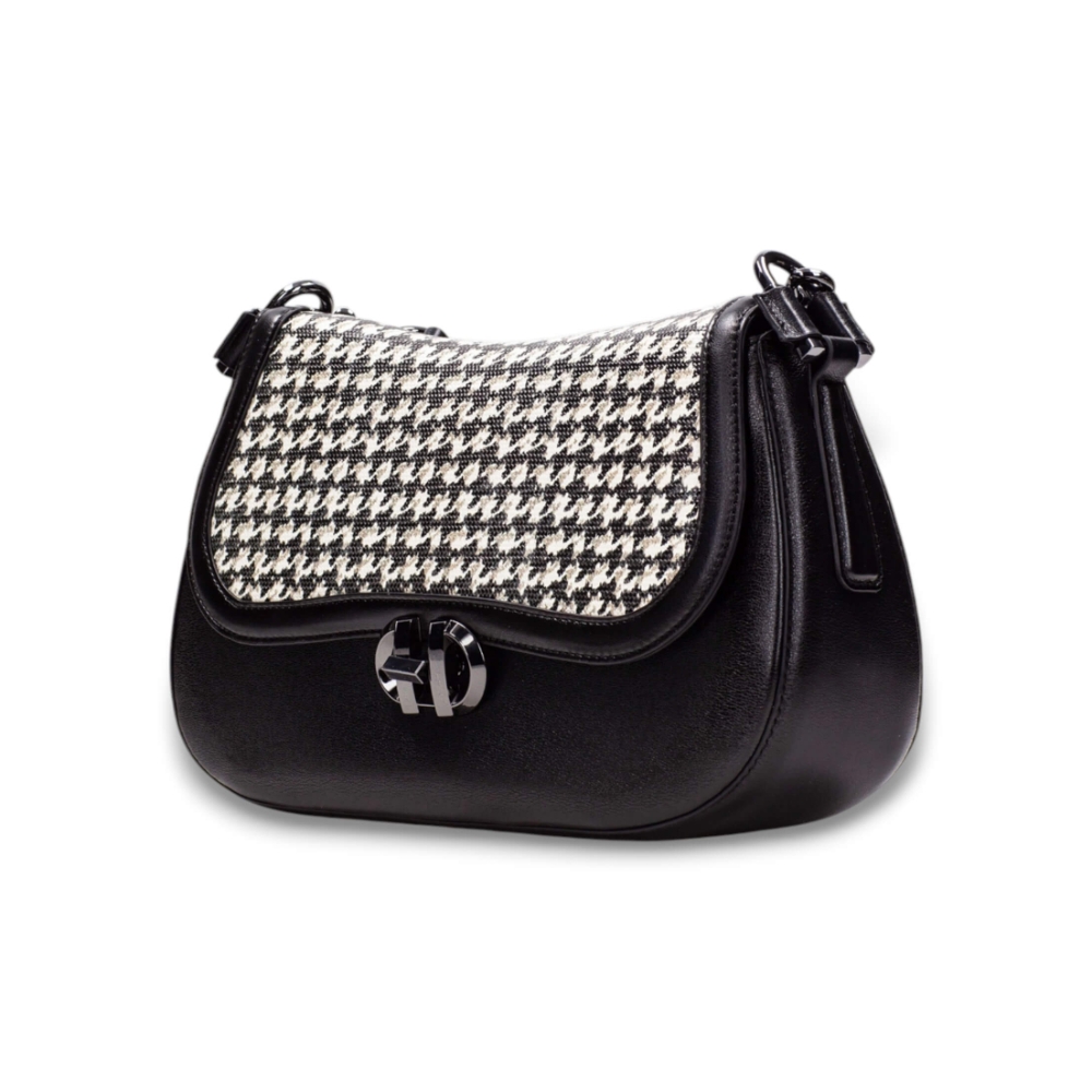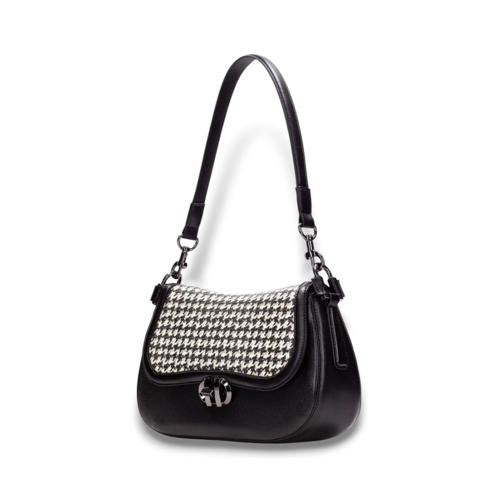 Bolso de hombro con silueta de media luna, elegante y versátil para elevar cualquier look diario o de noche.