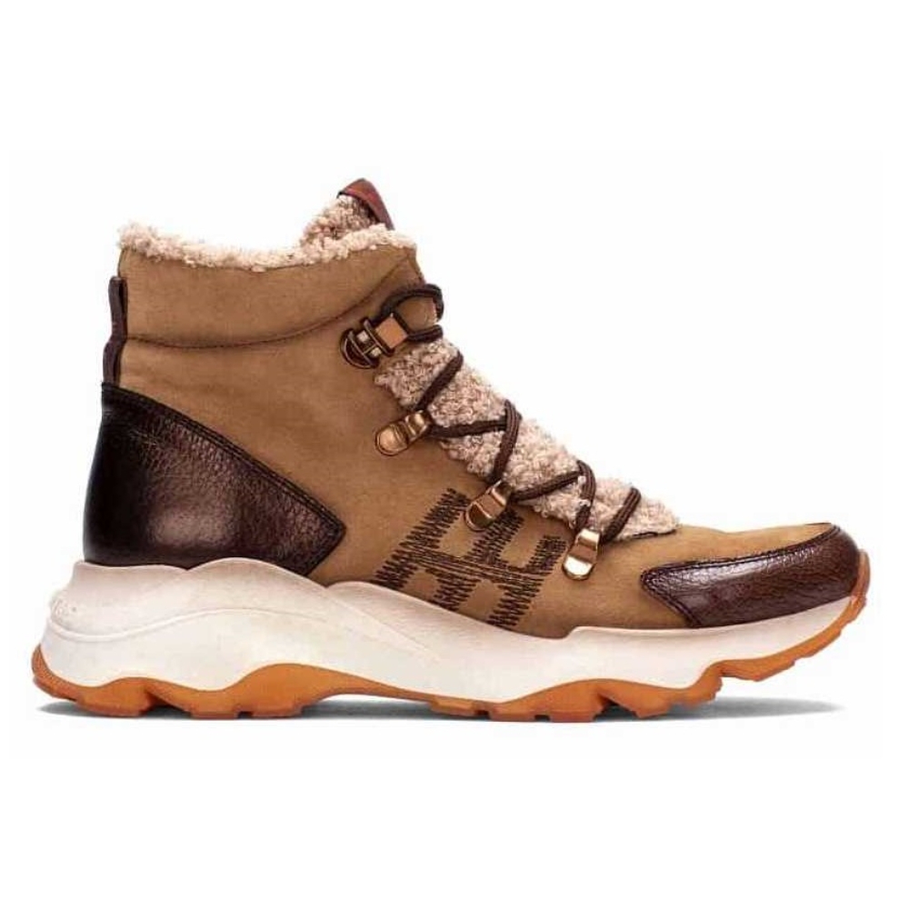 Deportivo abotinado acordonado y lengüeta en tejido de borrego de origen no animal.