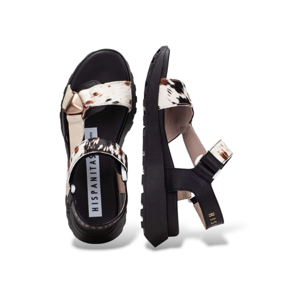 Las sandalias para mujer HISPANITAS CHV264807 Sport en color BLACK representan una propuesta contemporánea que fusiona estilo urbano, comodidad y personalidad en un diseño pensado para el día a día. Este modelo destaca por su estética deportiva reinterpretada con un enfoque actual, ideal para quienes buscan un calzado versátil que pueda acompañar distintos looks durante la temporada cálida. Su estructura abierta favorece la transpiración del pie y aporta una sensación de ligereza muy agradable al caminar. El diseño combina diferentes materiales y texturas que aportan profundidad visual, con tiras de acabado suave que envuelven el pie y proporcionan estabilidad. El contraste entre superficies lisas y zonas con pelo estampado crea un efecto visual dinámico y moderno, mientras que el tono BLACK de la base aporta carácter y versatilidad para combinar fácilmente con prendas informales, conjuntos urbanos o estilismos relajados. La suela de volumen marcado refuerza su estética deportiva y añade presencia al conjunto, convirtiendo este modelo en una opción atractiva para quienes desean un calzado cómodo sin renunciar a una imagen actual y cuidada.