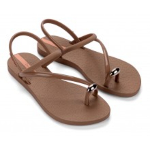 La sandalia Ipanema Glam Ring combina a la perfección elegancia y practicidad. Con tiras finas y delicadas, destaca por su anillo metálico, que le aporta un toque de glamour sofisticado. Además de su diseño moderno, su ajuste cómodo y práctico garantiza un uso diario.