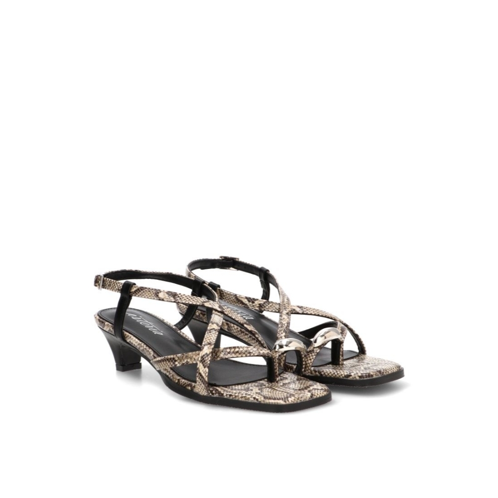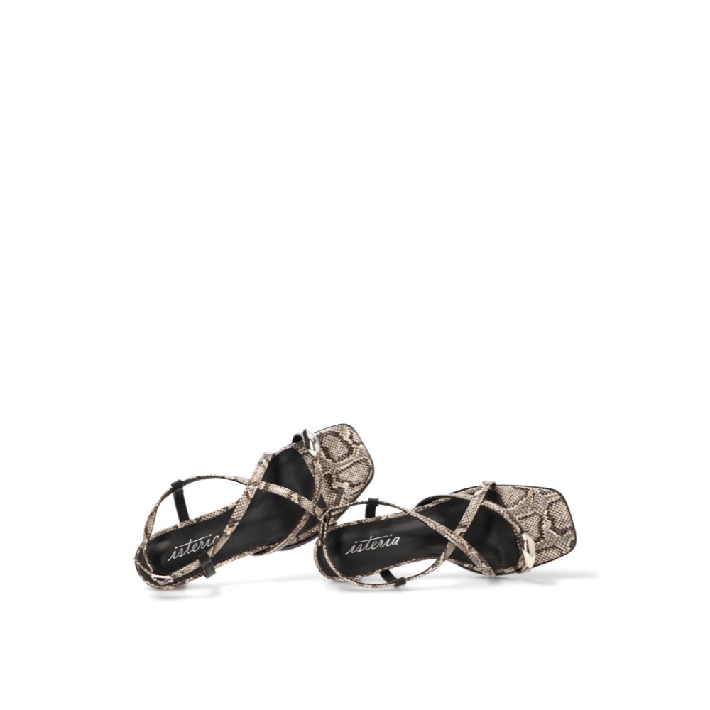 Sandalia con tacón bajo de la marca Isteria para mujer. Color serpiente.