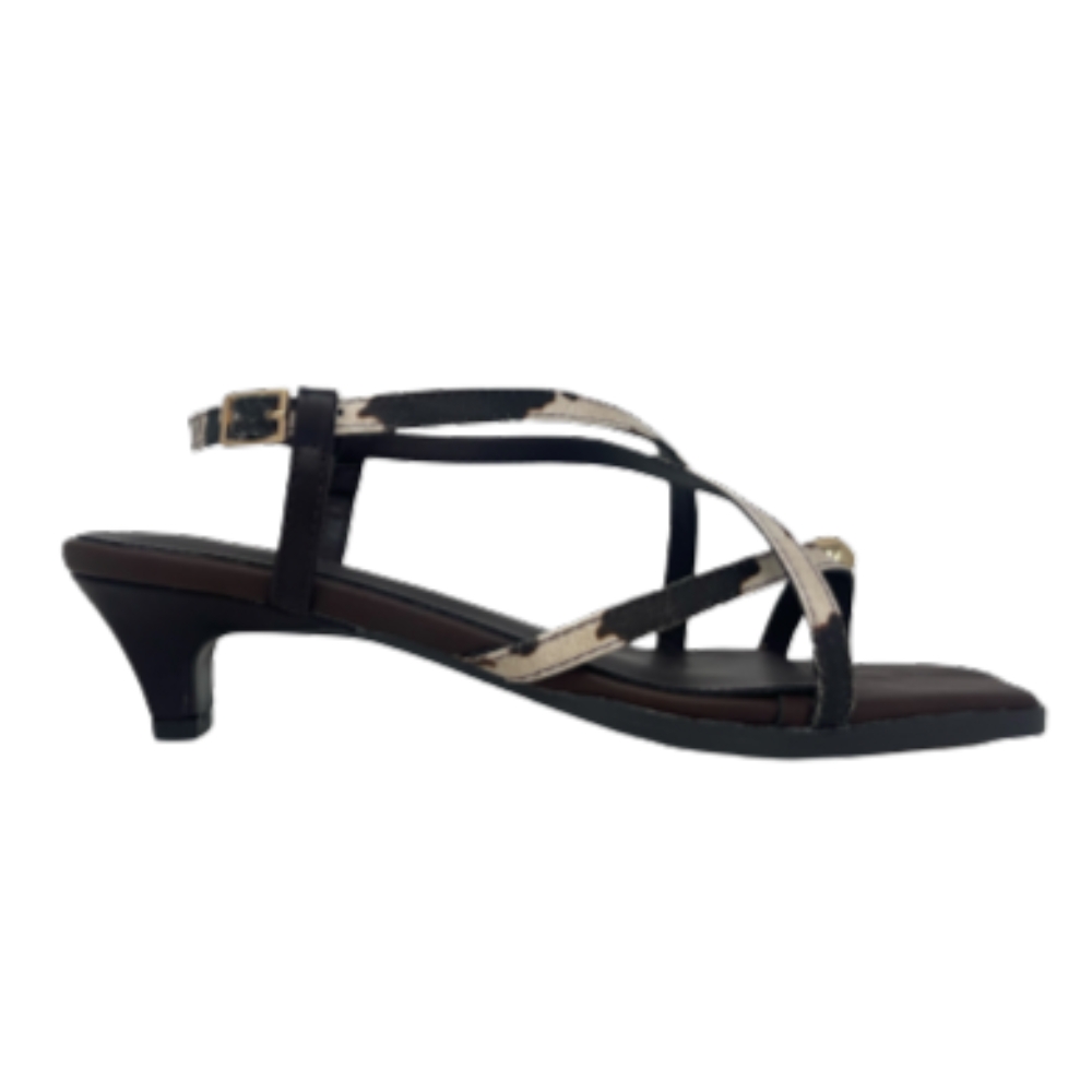 Sandalia con tacón bajo de la marca Isteria para mujer. Color vaca