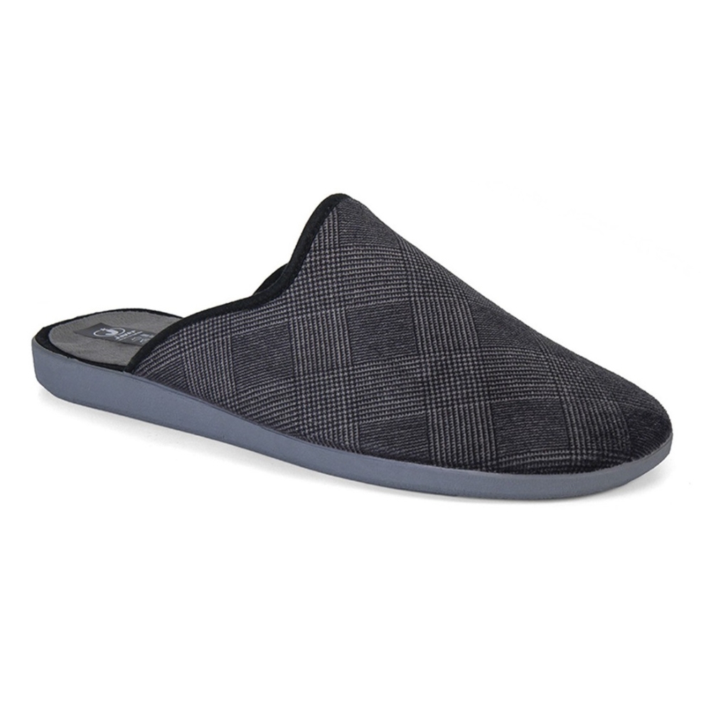 Zapatilla de casa en color gris. Fabricado en España con la suela vulcanizada 100% caucho natural y pelito suave para ofrecer una sensacion de confort y calidez