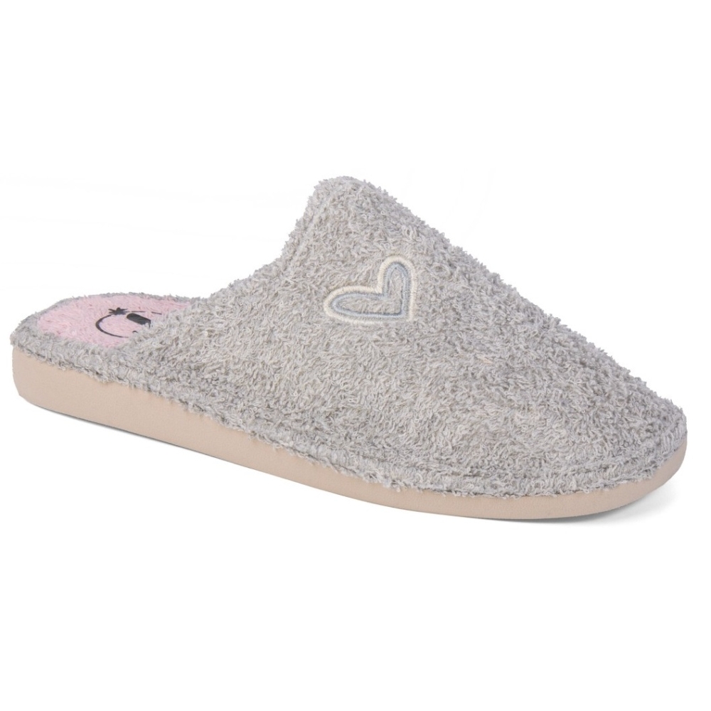 Zapatilla destalonada de rizo con suela eva especial para el parquet. Color gris