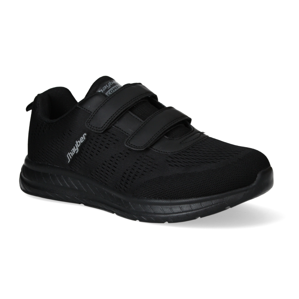 Zapatilla deportiva con velcros para hombre. Fabricada en material textil con plantilla memory foam. Color negro