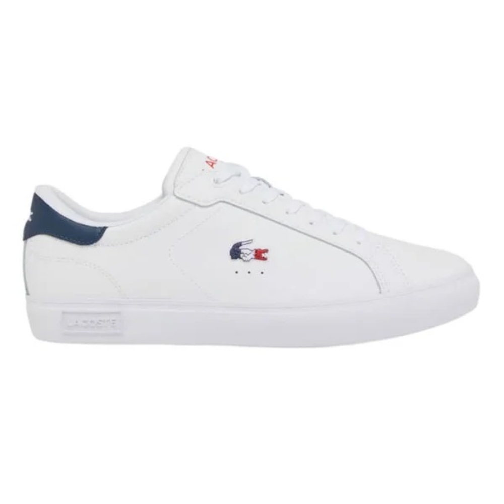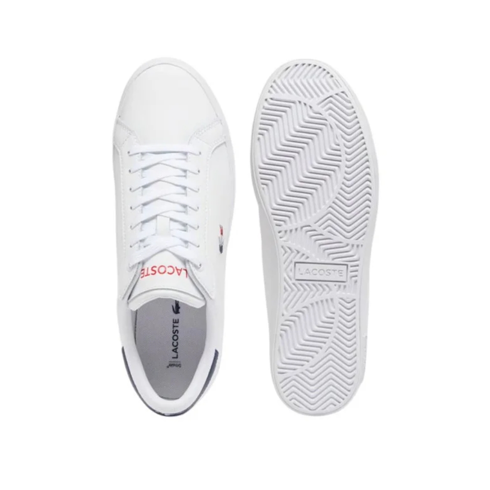 Las zapatillas Lacoste Powercourt 125 1 Sma para hombre son un modelo atractivo que combina estilo y funcionalidad. Con una parte superior de piel de alta calidad en una elegante combinación de blanco, azul marino y rojo, estas zapatillas destacan por su exclusivo contraste en el talón, donde se encuentra el icónico cocodrilo en bajorrelieve.