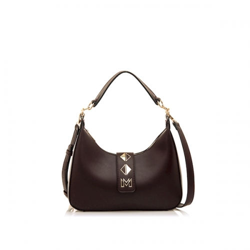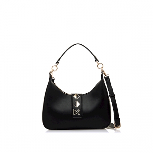 Bolso tipo hobo para mujer de Mariamare modelo Maday de color negro, con diseño estructurado y detalles metálicos en la solapa frontal que aportan un estilo actual. Incluye asa corta y correa larga extraíble, ofreciendo la posibilidad de llevarlo al hombro o cruzado según el momento. Su cierre con cremallera junto a la tira superior con cierre magnético mantiene el contenido protegido, y su tamaño es perfecto para llevar lo esencial sin renunciar a la comodidad. Un bolso versátil con un diseño limpio que se adapta a múltiples situaciones.