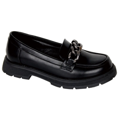 Mocasin de moda con cadena en el empeine. Color negro