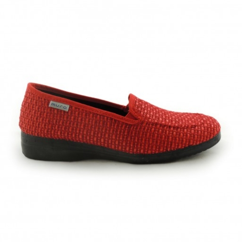 Zapatilla marca Garrido Muro. Estilo mocasín en color rojo con elástico. Suela flexible y antideslizante. Hecho en españa.