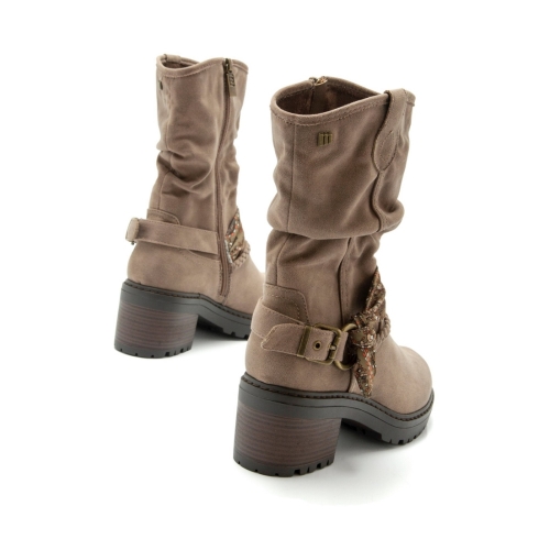 Botín Doris mtng para chica. Diseñado en color marrón taupe, destaca gracias a su original tira de tela con diseño boho a lo largo del empeine. Incluye cremallera interior en el lateral del botín. Cómodo tacón de altura media. Con estas mtng le darás un toque diferente a tus mejores looks. Material principal: Textil Altura Tacón: Alto (de 5 A 9 cm) Altura: 7.00 Material de la suela: De goma Tipo de tacón: Plano Tipo de cierre: Cremallera Material del interior: Sintético Material de la planta: Sintético Tipo de puntera: Redonda Tipo de caña: Media Vegano: False