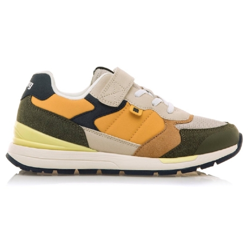 Zapatillas amarillo mostaza Compact para niño, de Mtng Kids. Este diseño combina diferentes texturas y tonalidades que aportan un toque moderno y divertido. Tienen un cierre adherente que facilita el ajuste, ofreciendo comodidad y sujeción durante todo el día. Compact de Mtng es el toque de color perfecto.