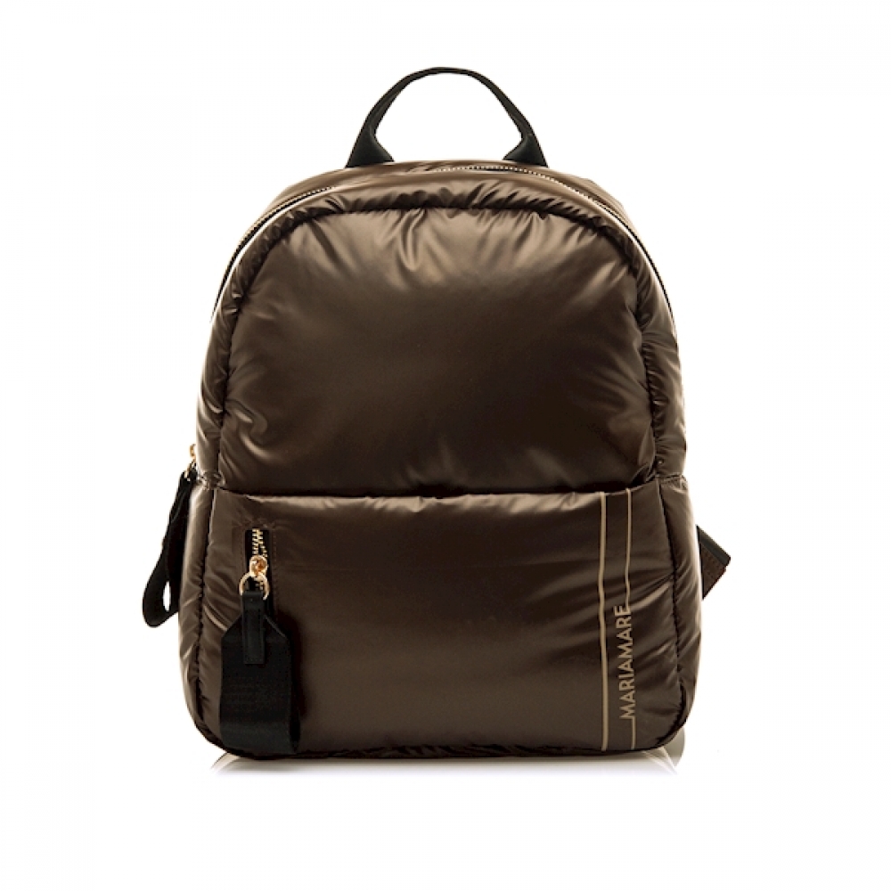 Mochila de color moka para mujer de Mariamare, modelo Aruna. Con un diseño acolchado y acabado brillante, es ideal para quienes buscan funcionalidad sin renunciar al estilo diario. Dispone de un bolsillo frontal con cremallera vertical y tirador decorativo en negro, que aporta contraste y practicidad. Las asas ajustables y el asa superior permiten llevarla cómodamente en cualquier situación. El nombre de la marca se integra sutilmente en el lateral en beige, reforzando su diseño moderno y versátil.