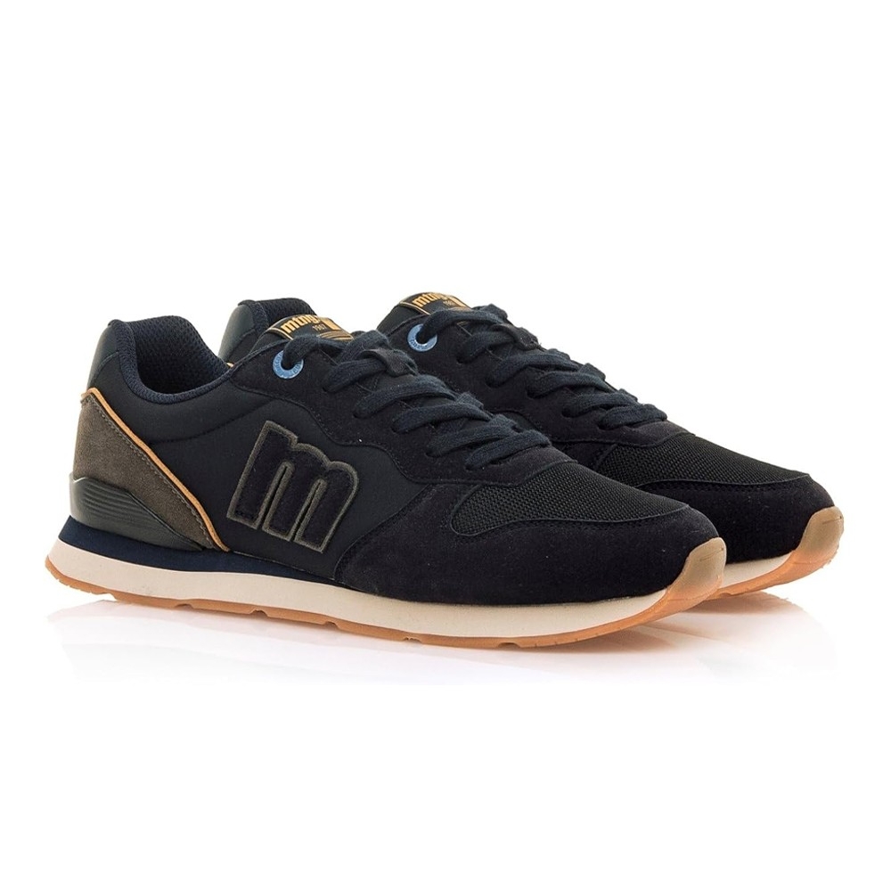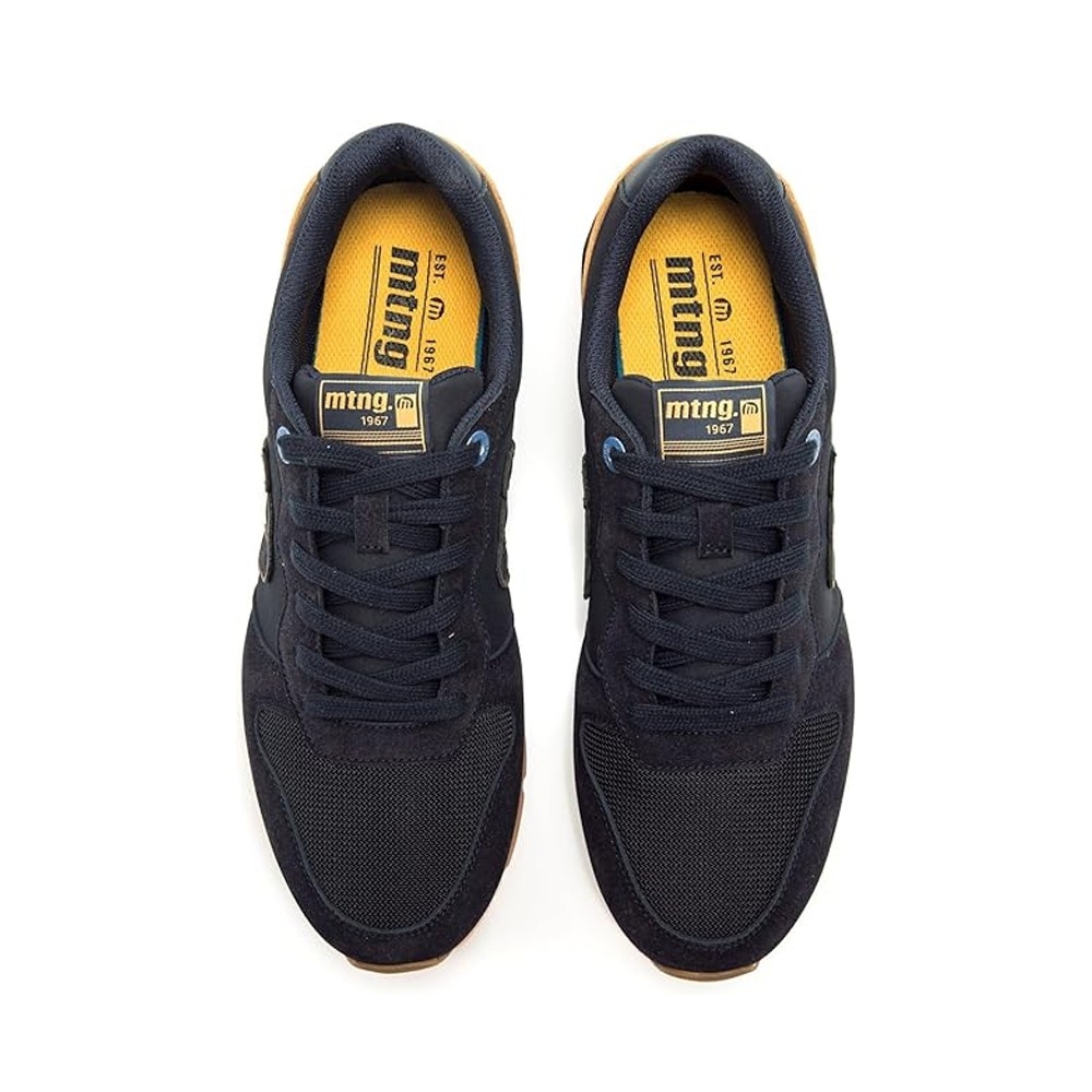 Zapatillas azul marino para hombre, modelo Joggo Classic de Mtng. Este modelo destaca por sus paneles azules y sus detalles en tonos verdes y naranjas, que añaden un toque dinámico y moderno. La combinación de colores, junto con su suela de goma, asegura un look versátil y fácil de combinar. Incorporan una plantilla de 4 mm con tecnología Starfit, estas zapatillas ofrecen una pisada suave y cómoda. Su espuma Comfort Foam aporta un acolchado extra, ideal para disfrutar de un confort prolongado en cada uso. Con certificado VEGANO sellado por INESCOP, el cual garantiza que la naturaleza química principal del material no se corresponde con fibras de origen animal.
