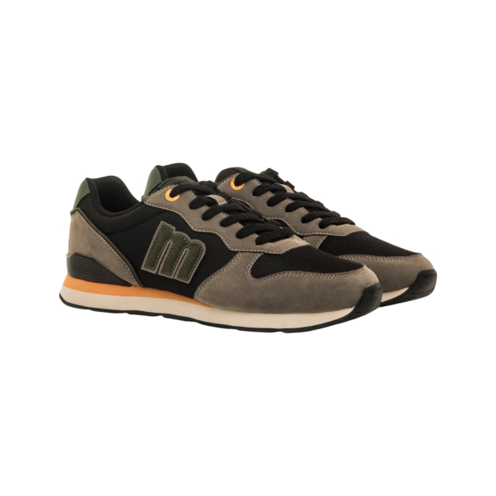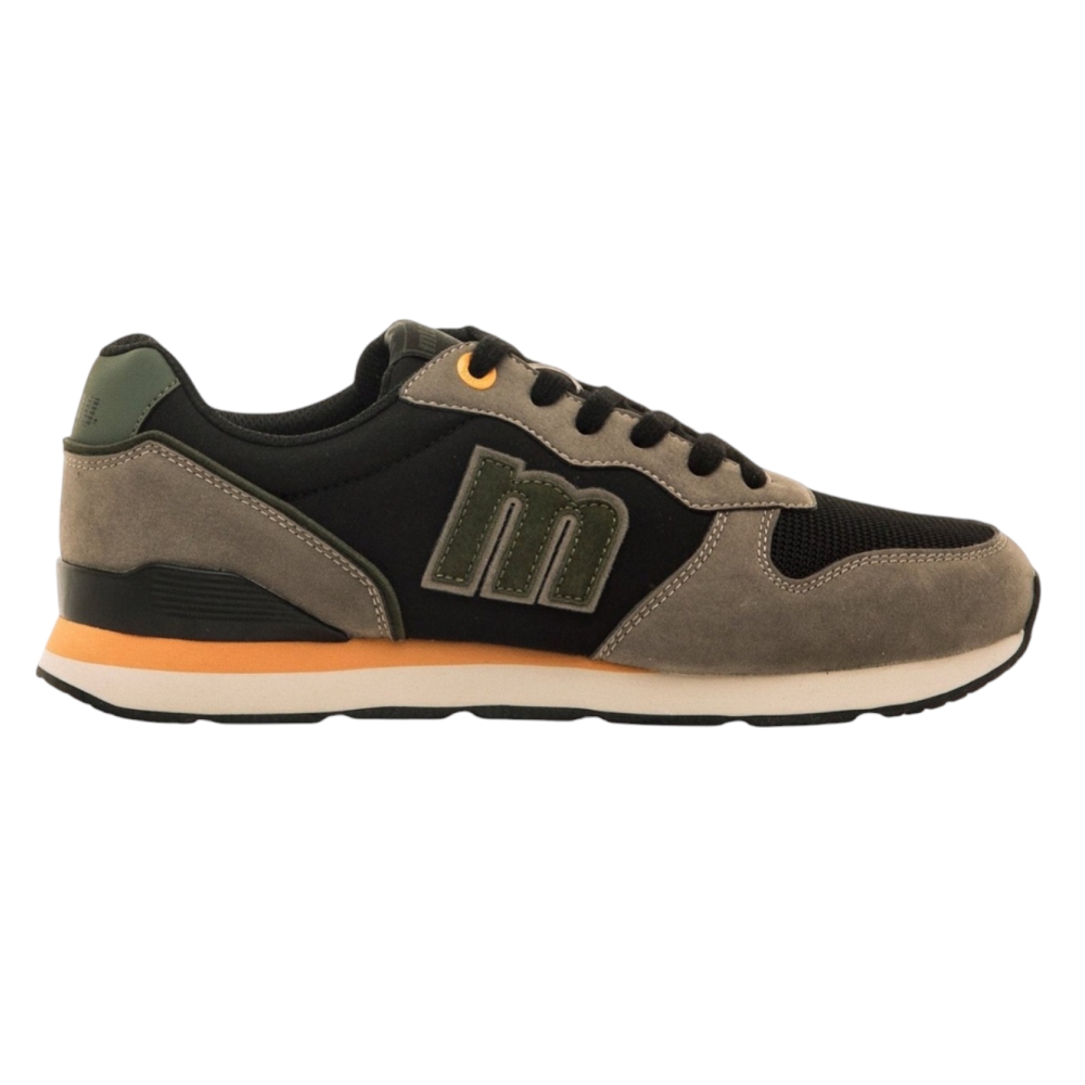Zapatillas negras para hombre, modelo Joggo Classic de Mtng. Este modelo destaca por sus paneles grises y sus detalles en tonos verdes y naranjas, que añaden un toque dinámico y moderno. La combinación de colores, junto con su suela de goma, asegura un look versátil y fácil de combinar. Incorporan una plantilla de 4 mm con tecnología Starfit, estas zapatillas ofrecen una pisada suave y cómoda. Su espuma Comfort Foam aporta un acolchado extra, ideal para disfrutar de un confort prolongado en cada uso. Con certificado VEGANO sellado por INESCOP, el cual garantiza que la naturaleza química principal del material no se corresponde con fibras de origen animal.