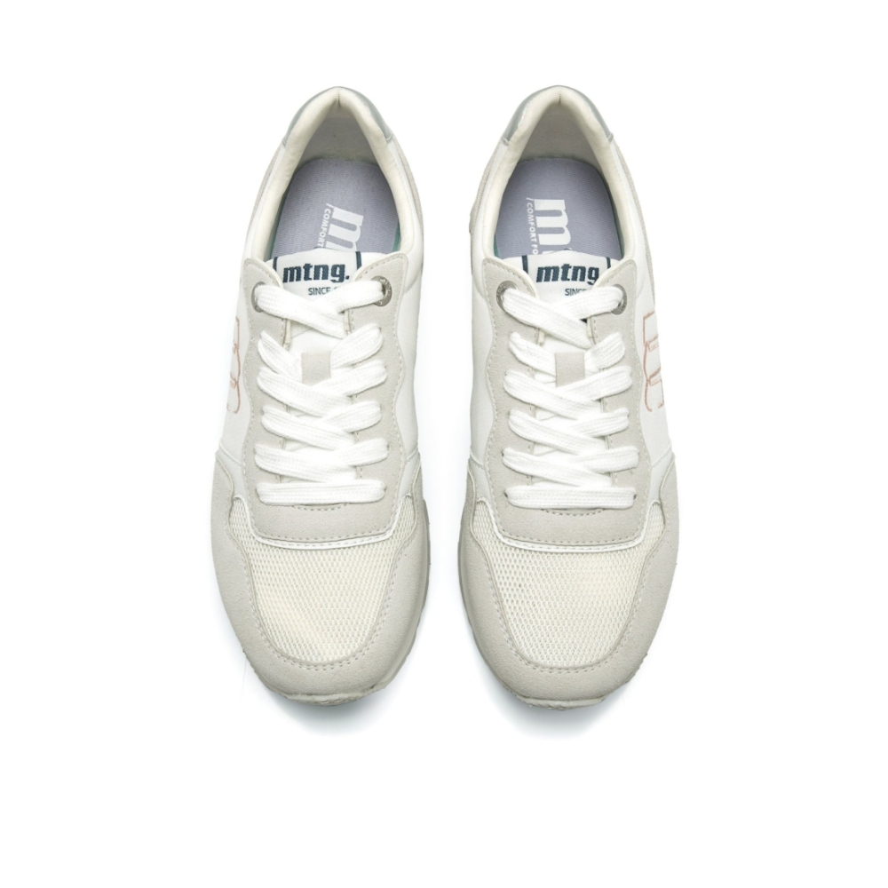 Zapatillas de color blanco para mujer de la marca Mtng, modelo Joggo Classic. Con un diseño de inspiración retro deportiva, combinan diferentes texturas y tonos piedra para un look versátil y fácil de combinar. La suela ligera y el cierre de cordones garantizan comodidad y un ajuste seguro. El logo lateral en relieve y los detalles en contraste aportan un toque moderno. Incorporan una plantilla de 4 mm con tecnología Starfit, estas zapatillas ofrecen una pisada suave y cómoda. Su espuma Comfort Foam aporta un acolchado extra, ideal para disfrutar de un confort prolongado en cada uso.