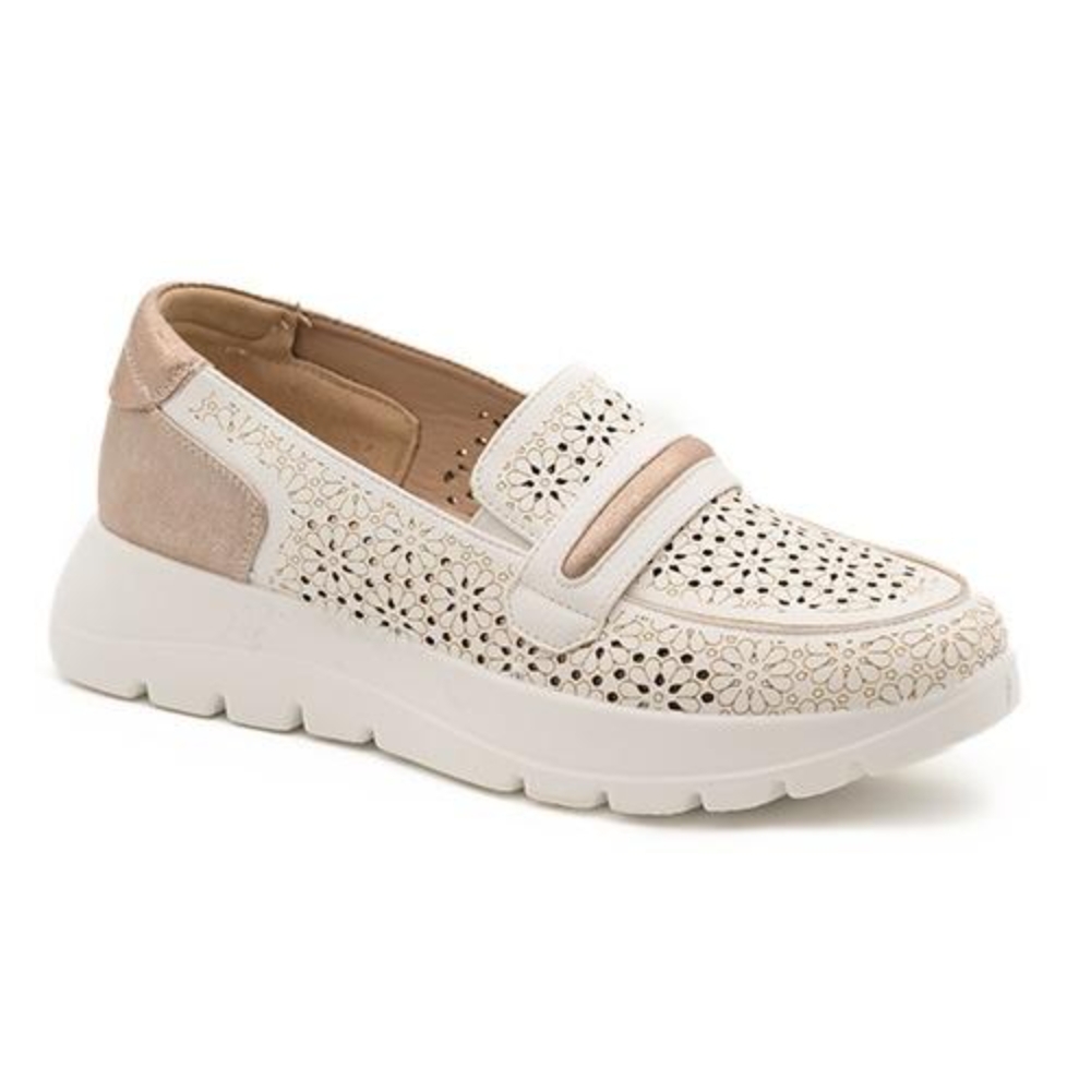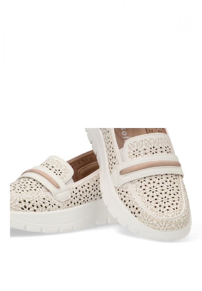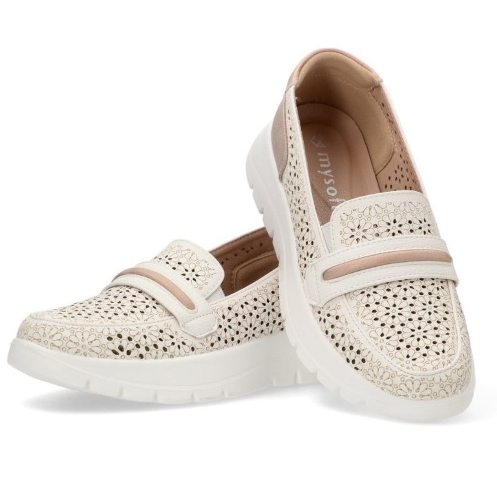 Mocasin para entretiempo de la marca Mysoft para mujer. Fabricado en material sintético ligero y transpirable con suela confort. Color blanco