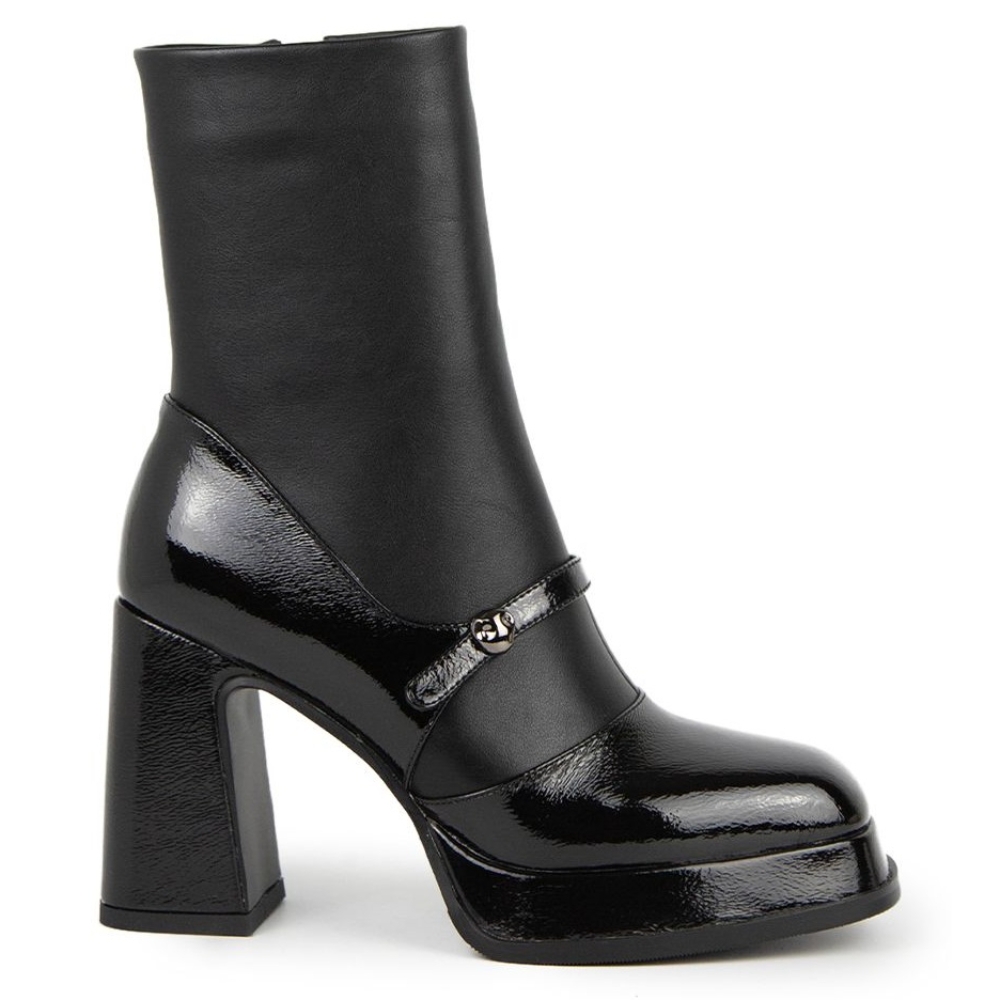 Botin con tacón alto y plataforma de la marca Noa Harmon para mujer. Detalle hebilla en el empeine. Color negro
