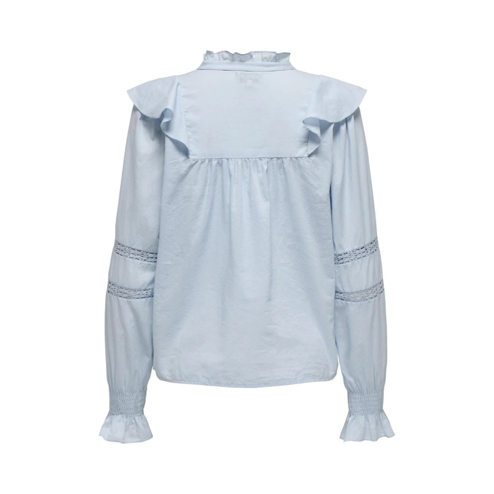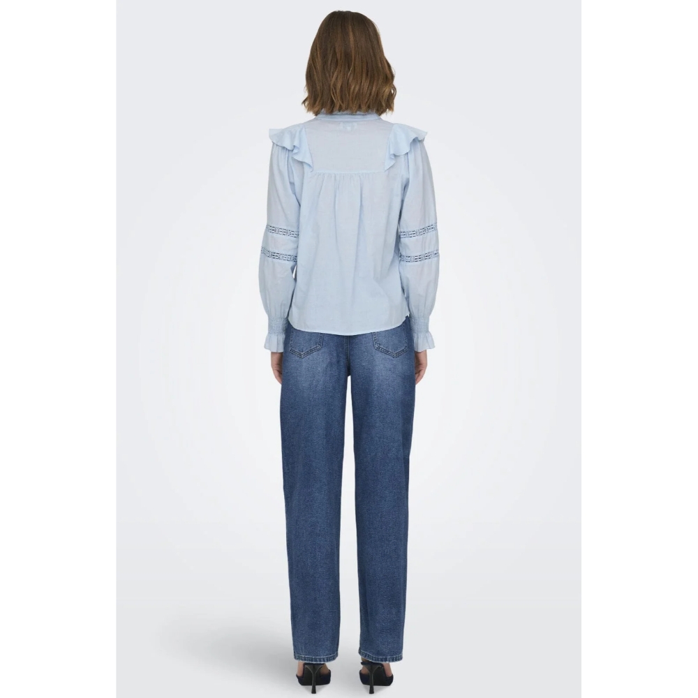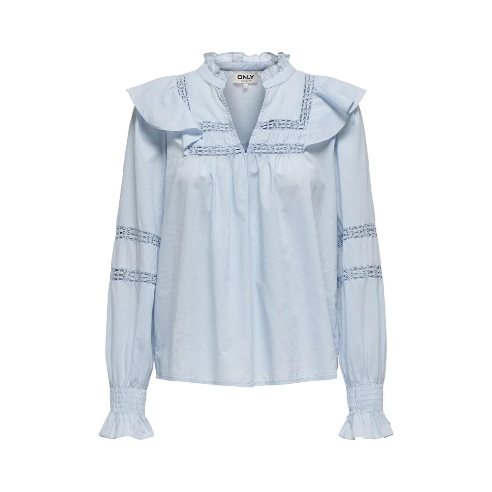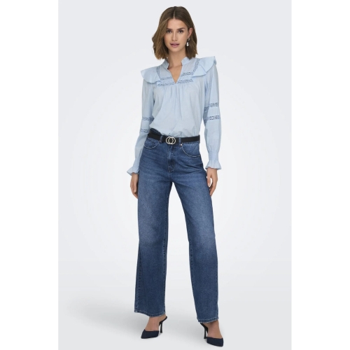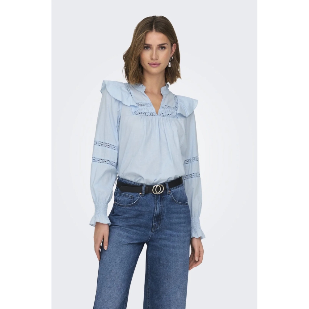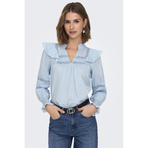 Transforma tu atuendo cotidiano en un segundo con un top femenino que le dé una expresión suave e impecable. - Artículo : Top - Cuello : Cuello en V - Manga : Manga larga - Mangas : Mangas voluminosas - Detalles : Volantes con volumen - Corte : Corte regular