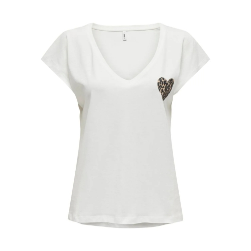 Camiseta con escote en pico combinada con animal print en logo. Color negro