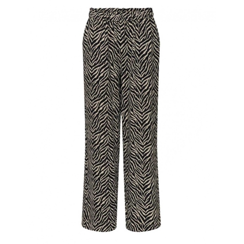 Nuevo pantalon perfecto para primavera con estampado de cebra. Una prenda de tejido fluido con goma fruncida en la cintura. Un pantalon cómodo con corte recto.