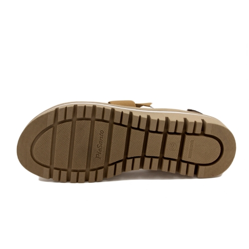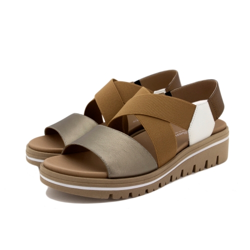 Sandalia confort de piel con elásticos en el empeine y talón para un mayor ajuste. Plantilla extraible y adaptable. Color bronce