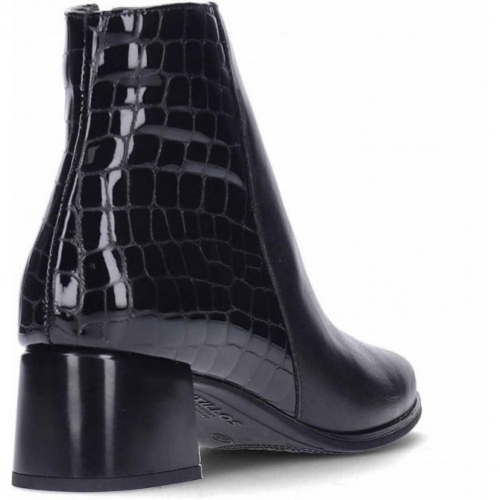 Los botines para mujer Pitillos 10824 Escamas en color negro se presentan como un calzado versátil y elegante que aporta un aire moderno a cualquier look. Su diseño destaca por la combinación de dos texturas que generan un contraste único: una parte lisa y sobria en la zona delantera y un acabado con efecto escamado en la parte trasera que añade dinamismo y sofisticación. Este modelo ha sido pensado para aquellas mujeres que buscan un equilibrio entre comodidad, estilo y durabilidad, ya que su estructura se adapta perfectamente a las exigencias del día a día sin renunciar a la estética. La silueta estilizada de estos botines permite que puedan usarse tanto en ocasiones formales como en contextos más relajados, logrando siempre un resultado impecable. El cierre lateral con cremallera asegura un ajuste sencillo y rápido, aportando practicidad y facilitando su colocación en cualquier momento. La calidad de los materiales empleados garantiza un acabado impecable, mientras que la base sólida ofrece seguridad y estabilidad en cada pisada. Gracias a la combinación de diseño clásico con toques modernos, este modelo se convierte en un imprescindible del armario femenino, ideal para renovar estilismos de temporada con una propuesta actual y atemporal.