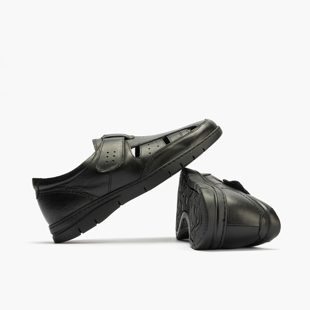 Si buscas confort y elegancia, la Sandalia cangrejera piel en color negro es tu mejor opción. Destaca por su material de piel y plantilla extraíble, facilitando la higiene diaria.
