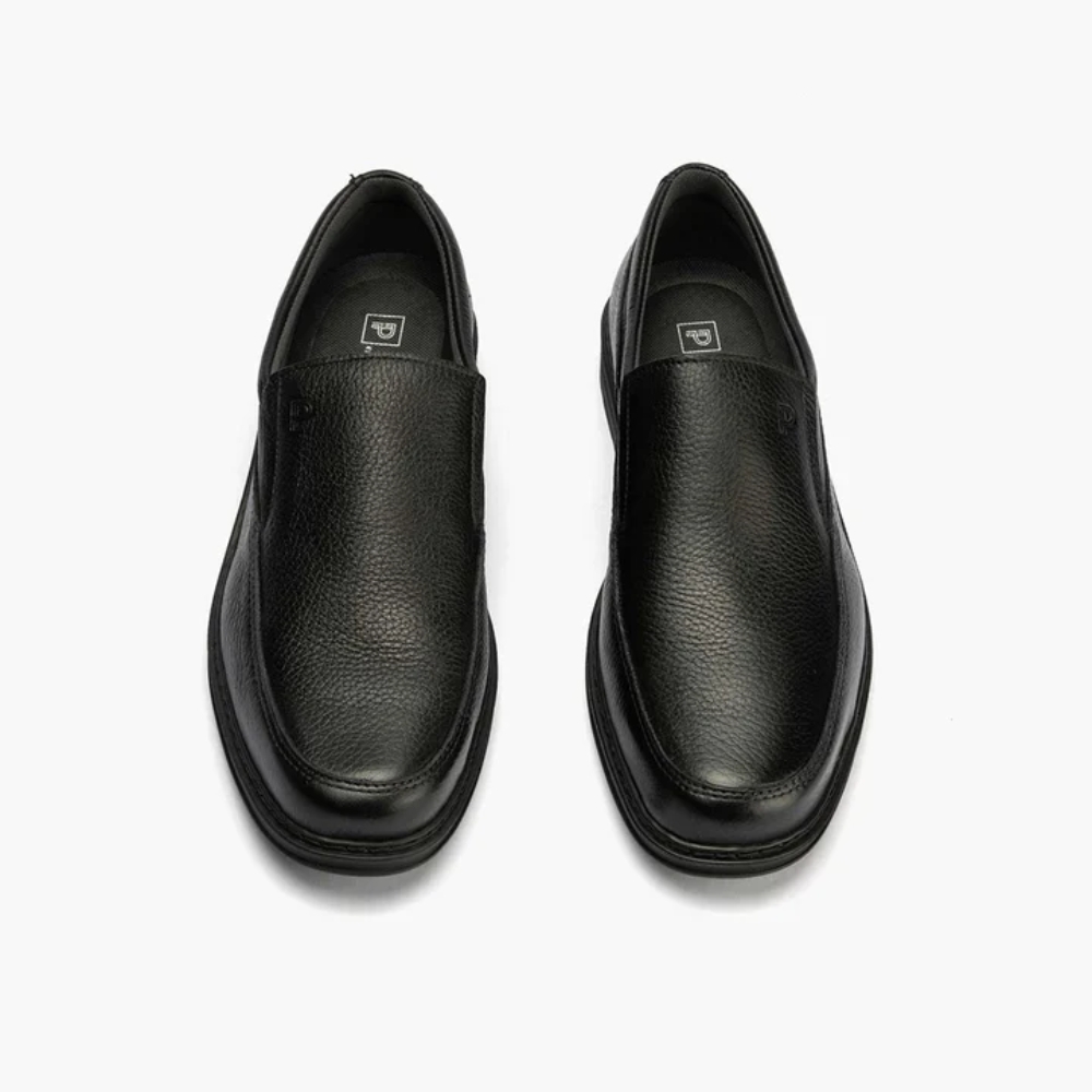 Zapato estilo mocasin de piel para hombre. Fabricado en España con piel de gran calidad, suela de goma con tacon tacón bajo, ideal para llevarlos durante largas horas. Color negro