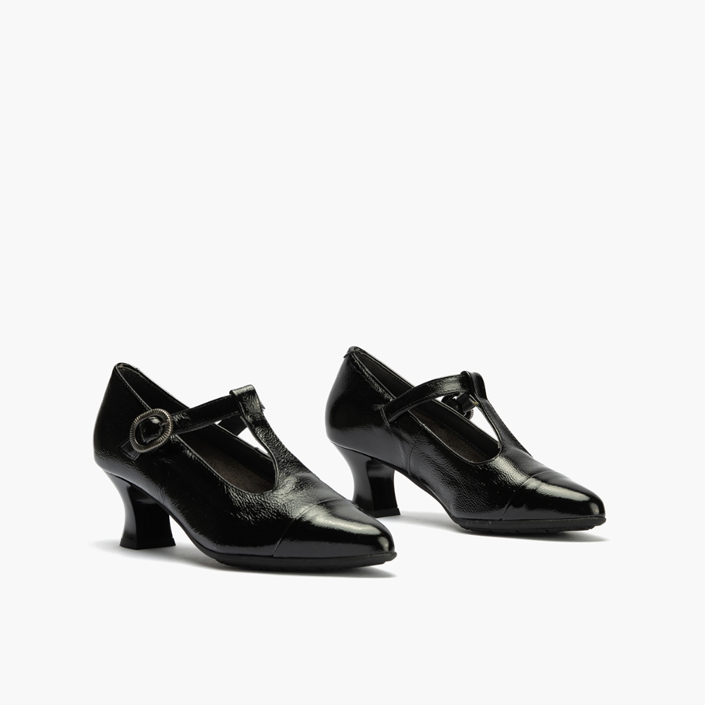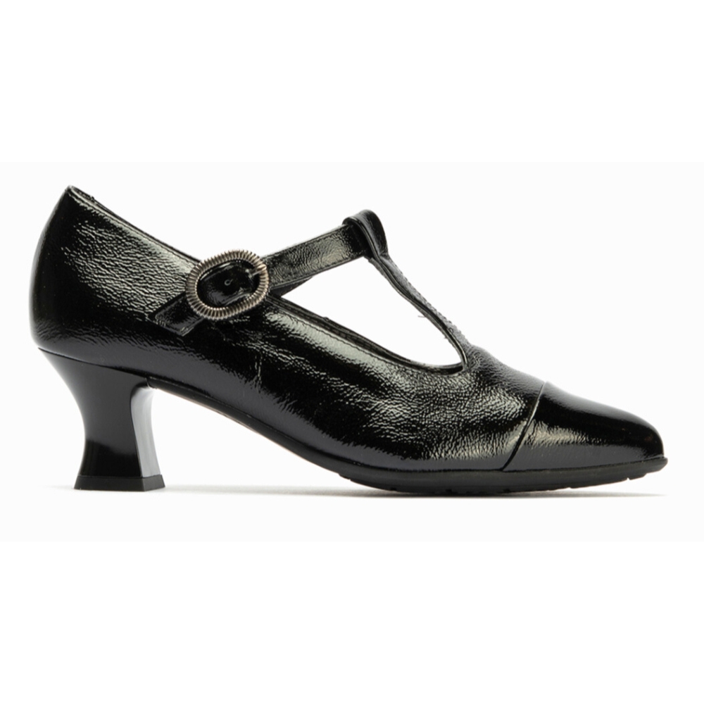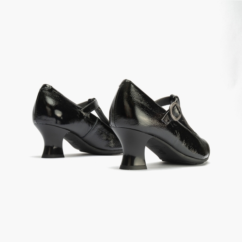 Zapato con tacon y hebilla de la marca Pitillos para mujer. Fabricado en piel de gran calidad con detalle de puntera. Color negro