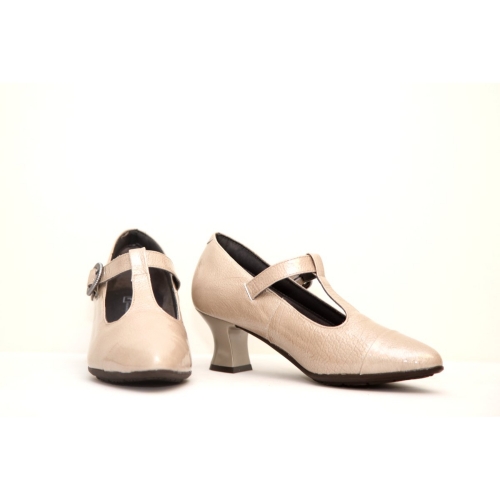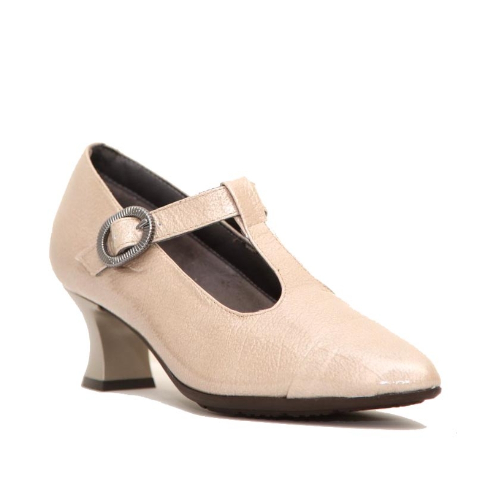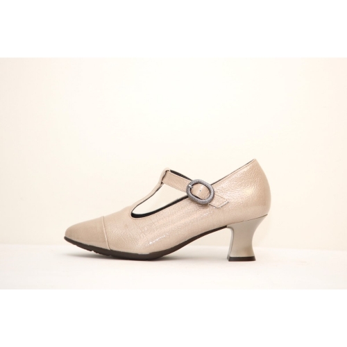 Zapato con tacon y hebilla de la marca Pitillos para mujer. Fabricado en piel de gran calidad con detalle de puntera. Color piedra