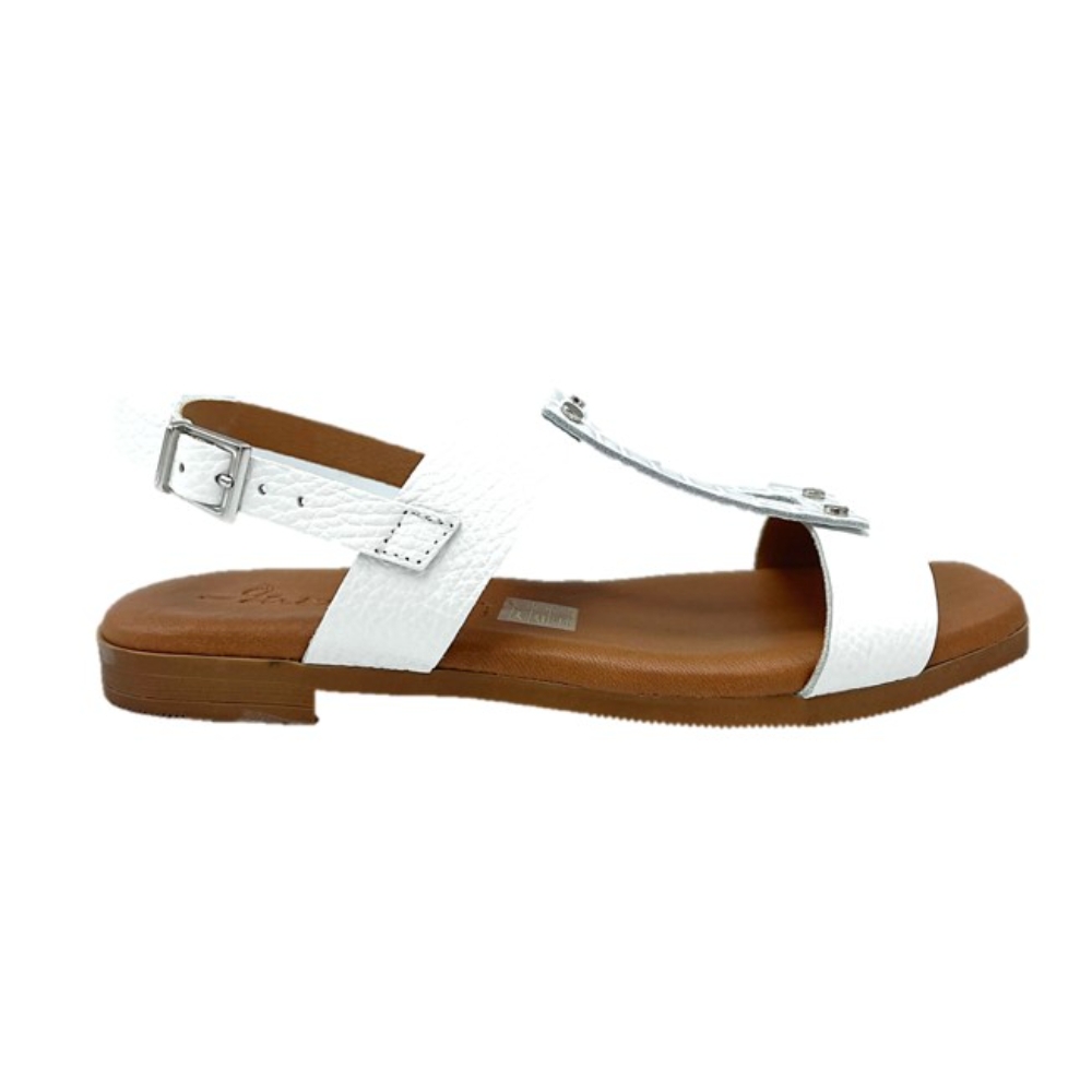 Sandalia de la marca Rivera con tacón bajo. Fabricada en piel de gran calidad con plantilla de gel extra cómoda. Color blanco