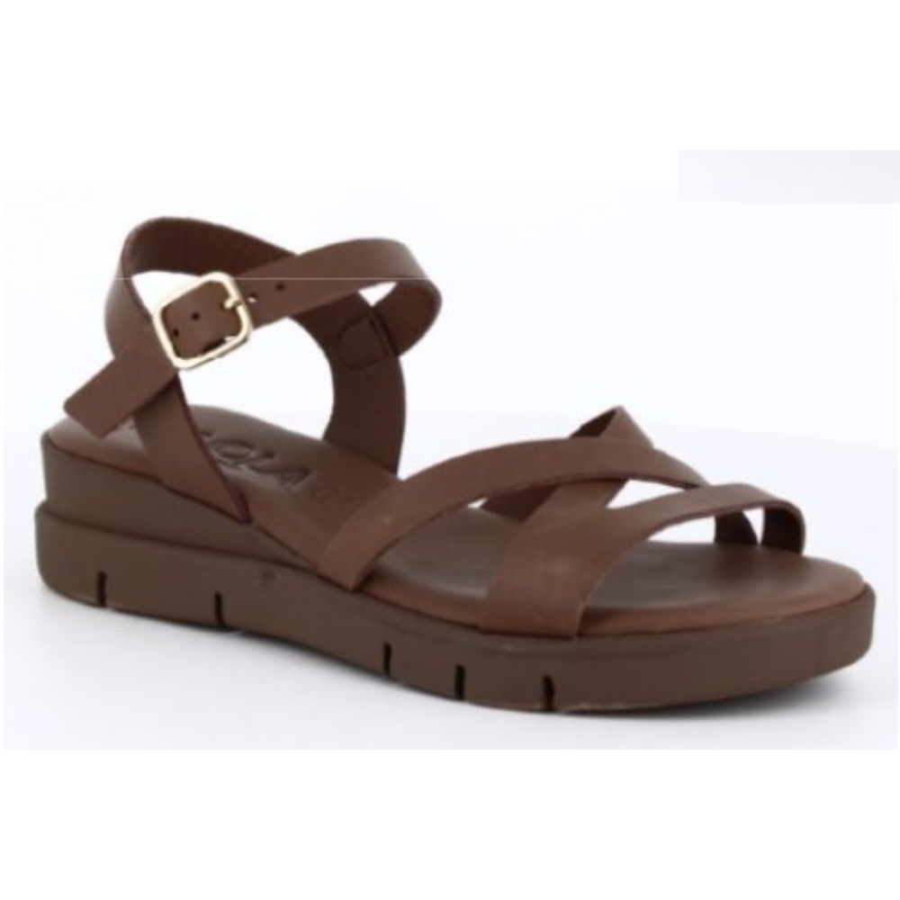 Sandalia de piel de la marca Rivera para mujer. Fabricada en España con piel de gran calidad y plantilla de gel acolchada. Color marron