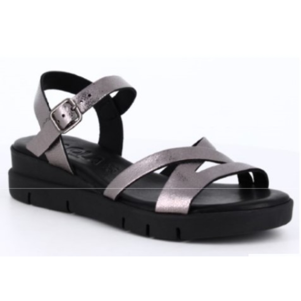 Sandalia de la marca Rivera para mujer. Fabricada en España con piel de gran calidad. Suela antideslizante y plantilla acolchada para una mayor comodidad. Color negro metalizado