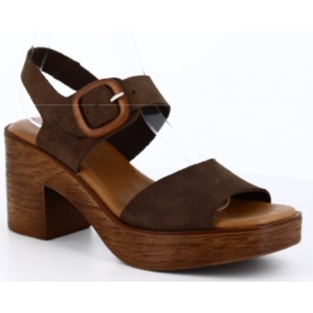 Sandalia de piel con tacón y plataforma para mujer. Fabricada en España con piel de gran calidad y plantilla acolchada para una mayor comodidad. Color marron