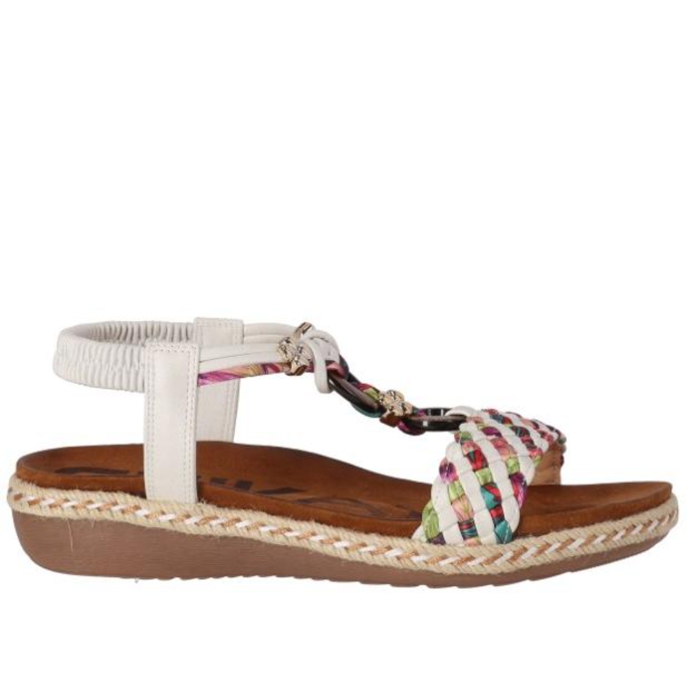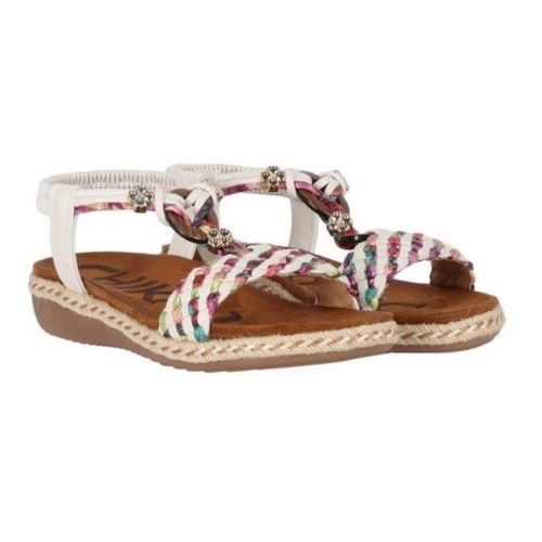 Sandalias abiertas de mujer de color blanco de la marca Chika 10. El material usado en su fabricación es varios materiales . El tacón de este par de sandalias es cuña 1-5 cm.