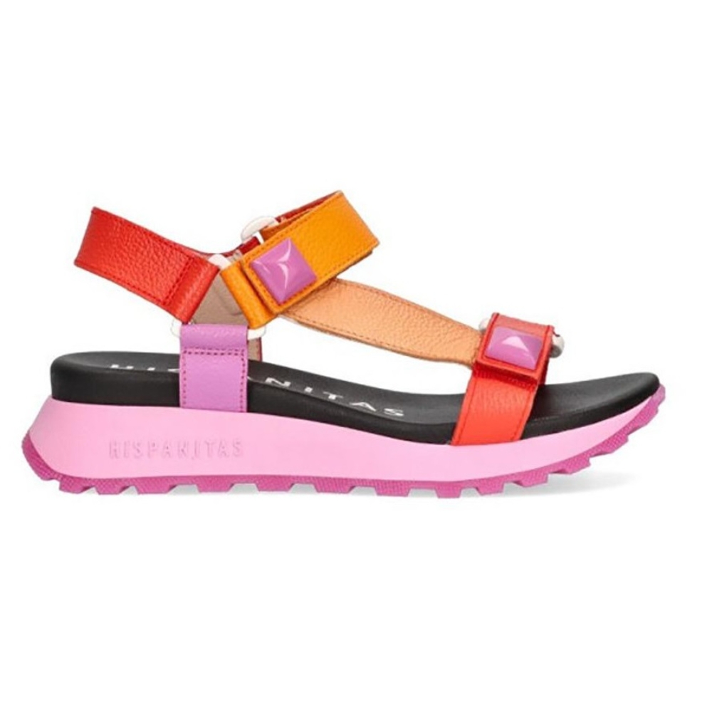 Sandalia estilo confort con velcros de la marca Hispanitas para mujer. Fabricada en España con piel de gran calidad. Color mandarina
