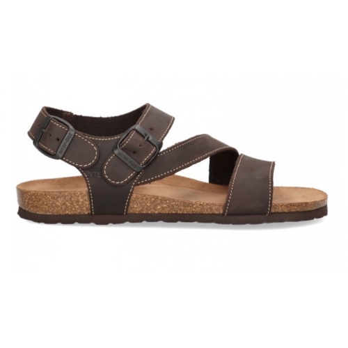 Sandalia confort con velcro de la marca Interbios para hombre. Fabricada en piel de gran calidad con plantilla anatomica de piel para una mayor absorción del sudor. Color moka
