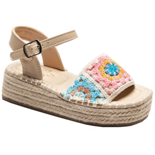 Sandalia con plataforma de la marca Bubble para niña. Fsabricada en material textil con plantilla acolchada y cierre de hebilla. Color beig
