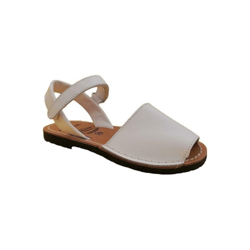 Menorquina con velcro tipo unisex. Faricada en piel, color blanco.