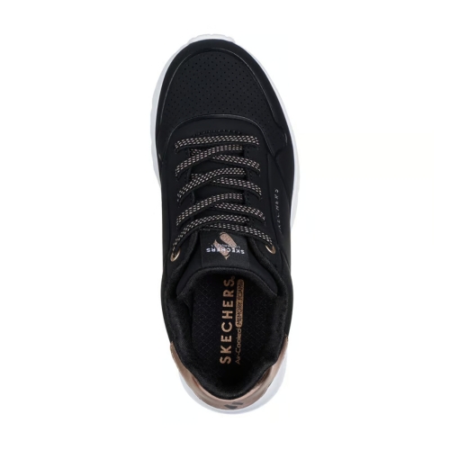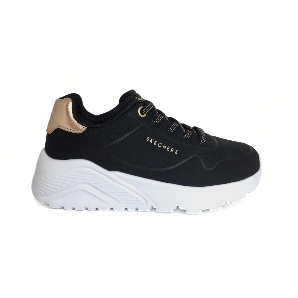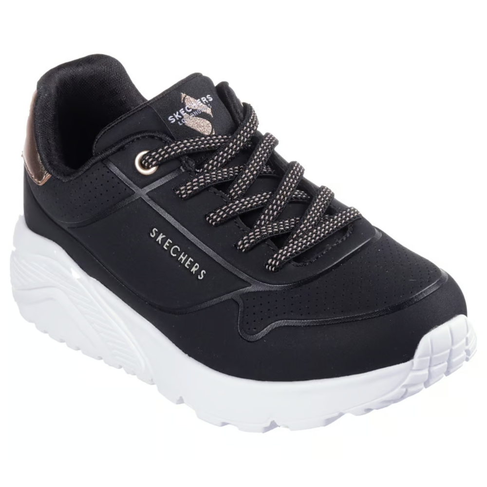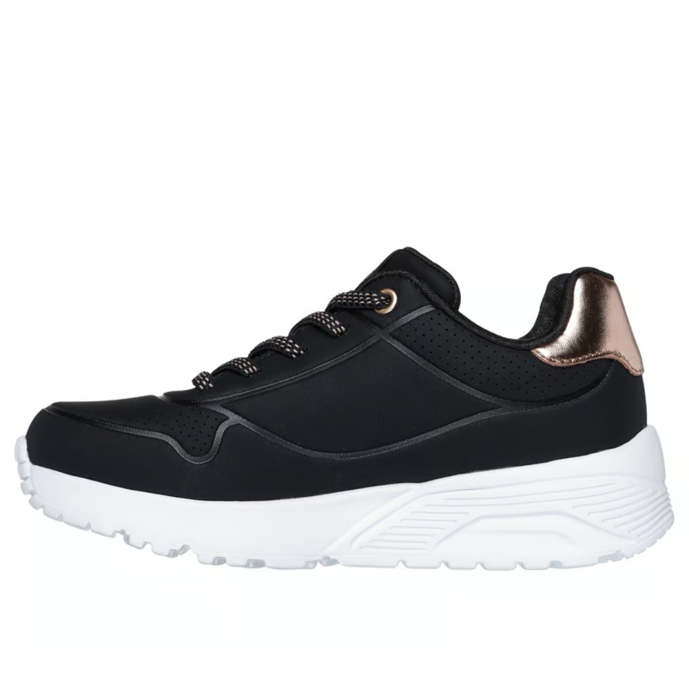 Sube el nivel de tus zapatillas con la comodidad y la amortiguación de Skechers Street™ Uno Lite. Este modelo moderno con cordones elásticos presenta una parte superior de sintética de durabuck con ribete metalizado, cierre Adaptive Closure de Skechers, plantilla Skechers Air-Cooled Memory Foam® y media suela con amortiguación con cuña de plataforma.