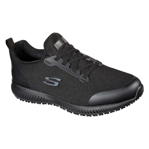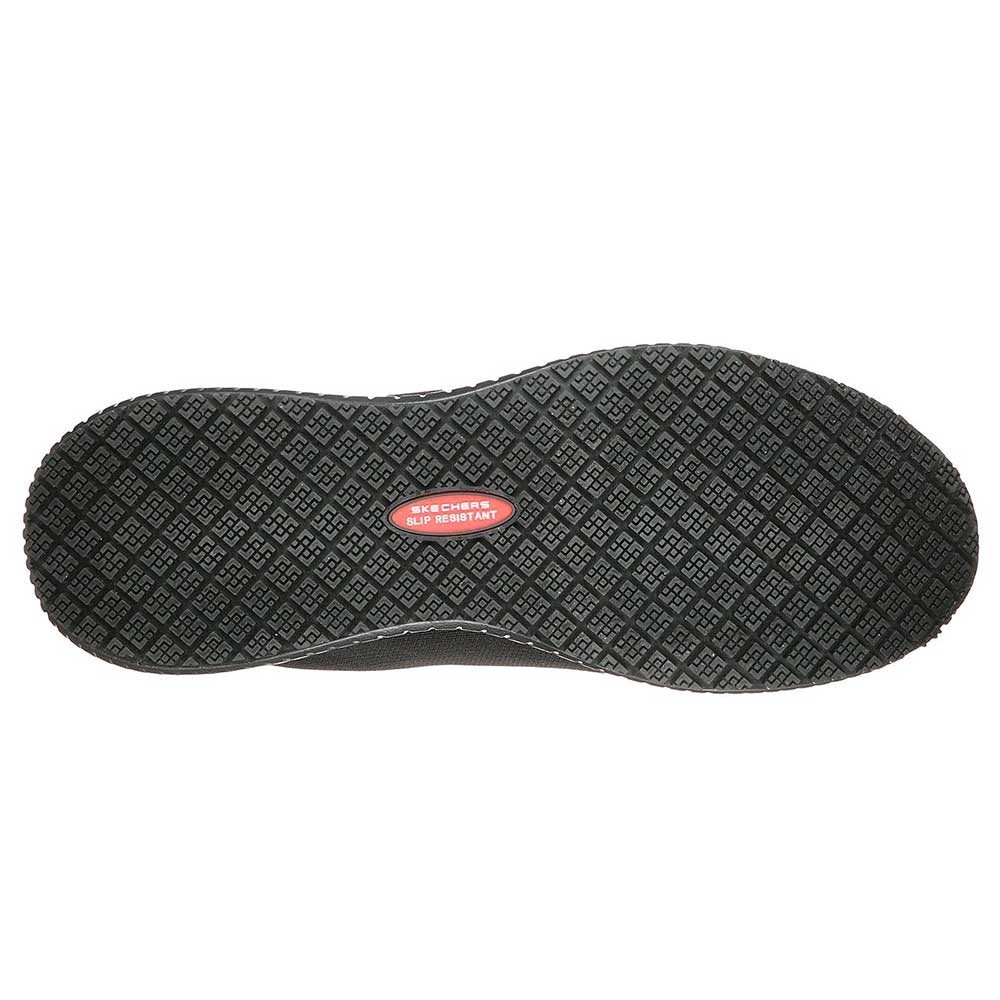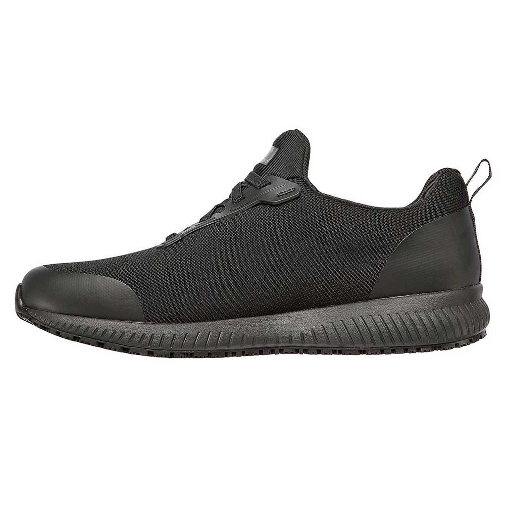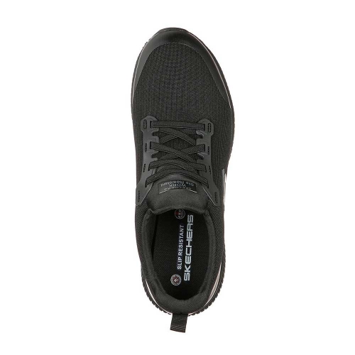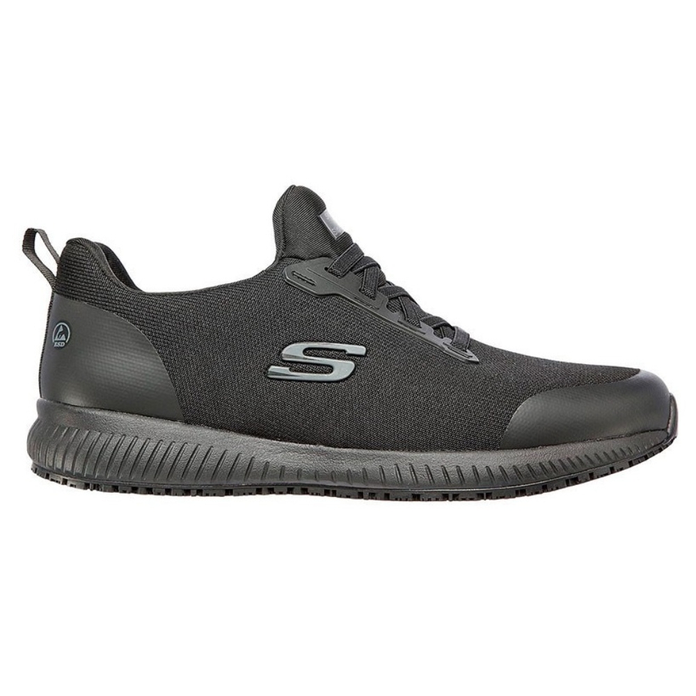Vístete con comodidad y estilo todo el día con Skechers Work™: Squad SR - Myton ESD. Zapatilla de trabajo sin cordones, con parte superior de malla de knit suave, suela antideslizante, diseño antiestático y plantilla con amortiguación. Suela con tracción antideslizante (SRC) y resistente al aceite combustible. Diseño ESD para minimizar la cantidad de electricidad estática acumulada (EN IEC 61340-4-3:2018). Plantilla Hi-Poly. EN ISO 20347:2012. 01 FO SRC ESD. Detalles: Parte superior de malla de knit suave y material sintético con cordones elásticos en la parte delantera. Media suela ligera y flexible con absorción de impactos. Talón de 3,17 cm. Logotipo de Skechers®.