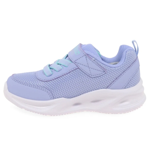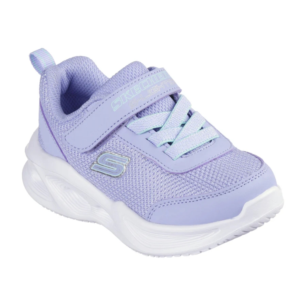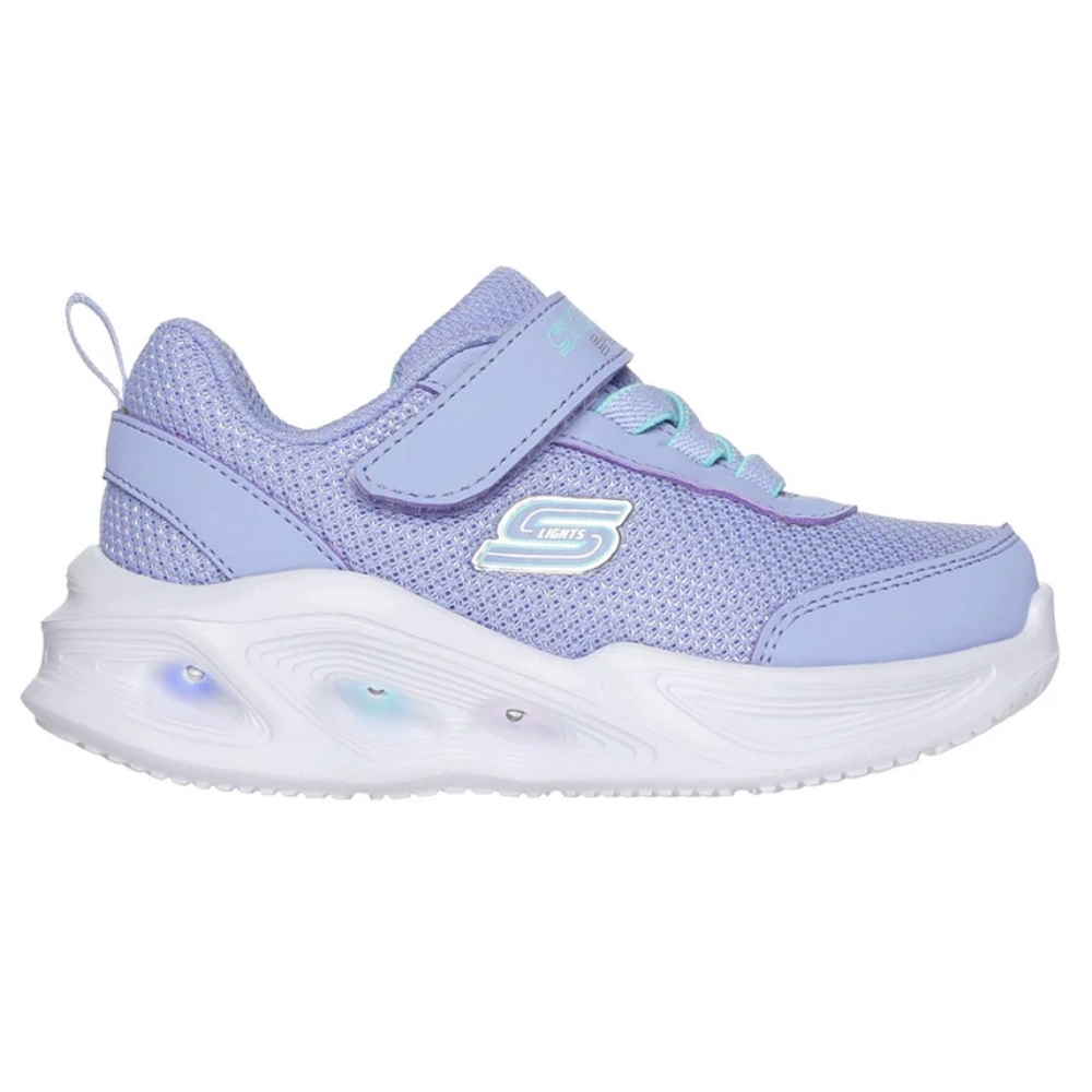 Dale un toque divertido a la moda deportiva con las Skechers Sola Glow. Este diseño activo de luces multicolores presenta una parte superior de malla y material sintético con cordones elásticos, una correa ajustable en el empeine y una entresuela iluminada y bien acolchada
