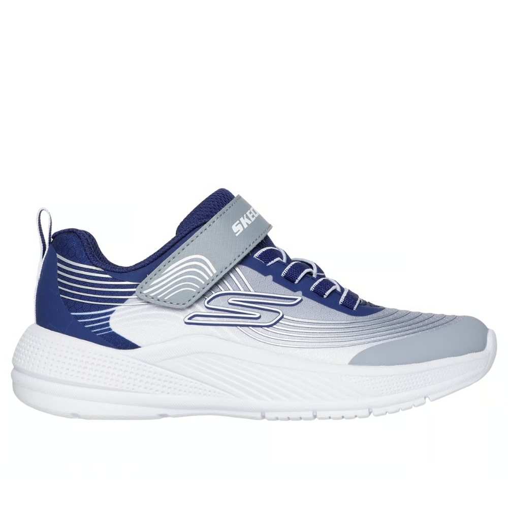 Ponte en forma con este divertido y colorido modelo de Skechers Microspec Advance. Este modelo deportivo presenta una parte superior de malla multicolor con capa superpuesta con estampado háptico, cordones elásticos, el tipo de cierre Skechers Adaptive y una cómoda plantilla con amortiguación