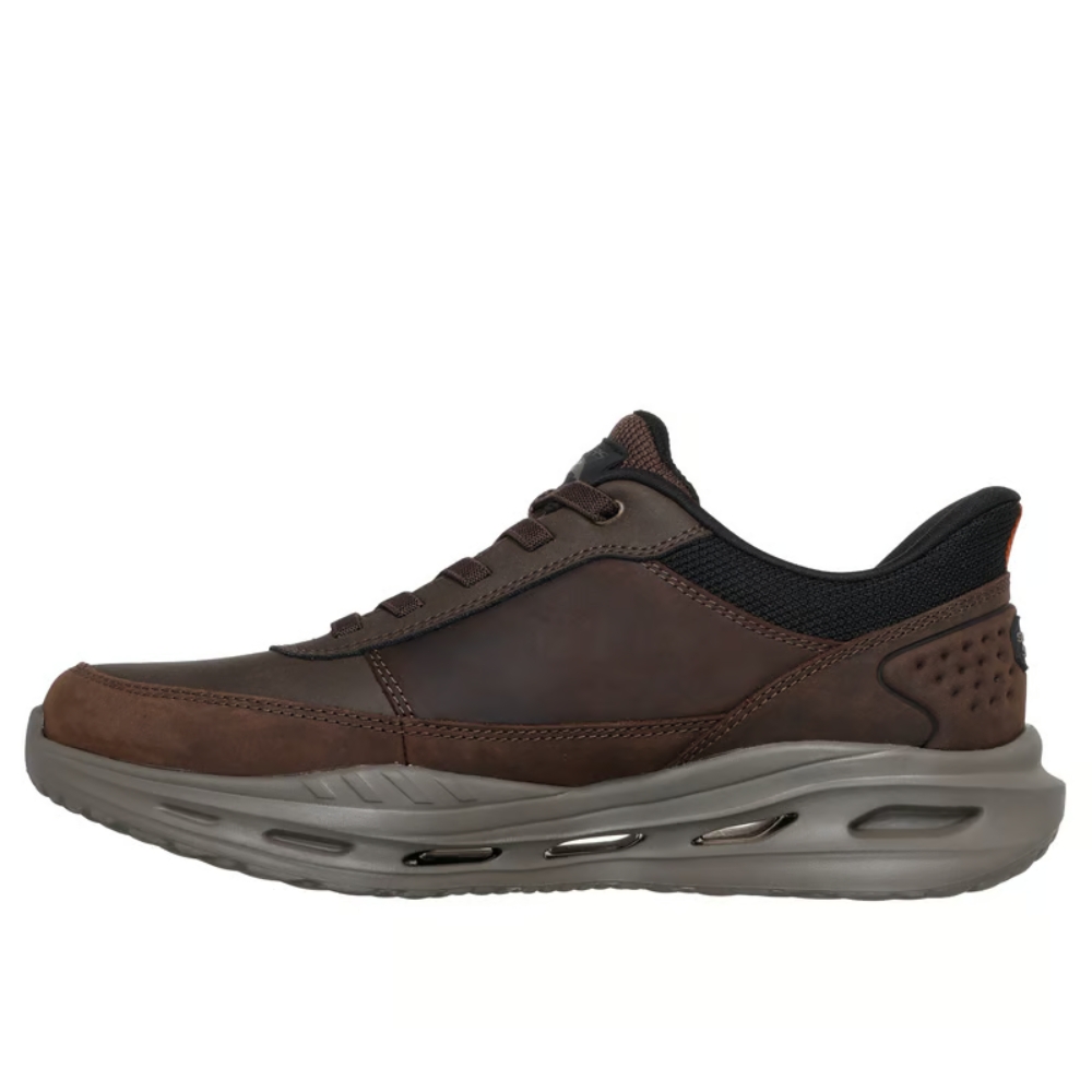 Unas zapatillas supercómodas de llevar y con un amplio soporte: así son las Skechers Hands Free Slip-ins® Relaxed Fit™: Arch Fit® Orvan - Moxley. Diseñado con nuestro sistema Heel Pillow™, este modelo EFFICIENCY™ presenta una parte superior de piel y material sintético con cordones elásticos, una plantilla Arch Fit® extraíble y una media suela Glide-Step®.
