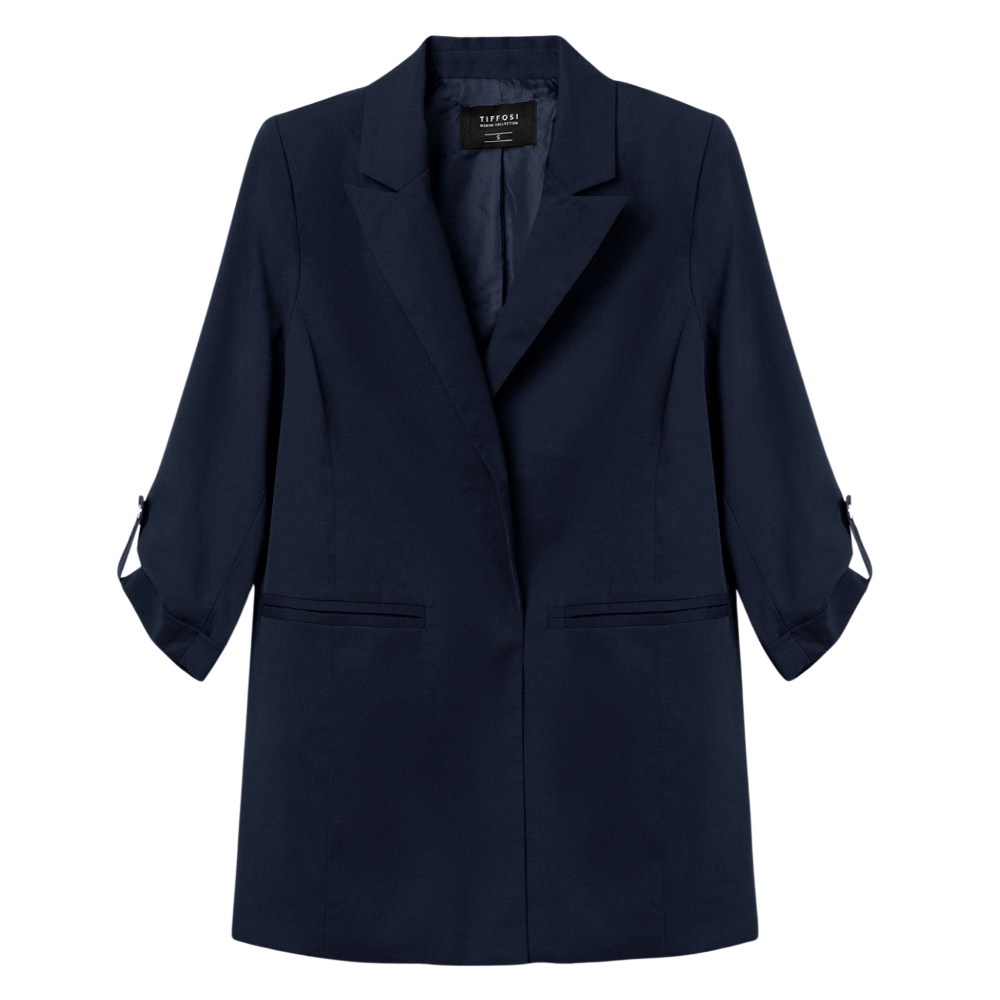 Blazer regular fit con dos bolsillos con solapa, solapa con muesca, apertura frontal y manga larga con botón metálico.100% POLYESTER