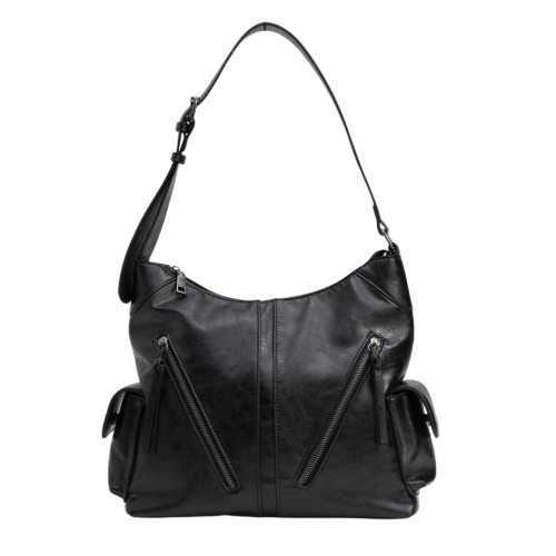 Bolso utilitario con cierre de cremallera. Asa ajustable. Bolsillos delanteros y laterales.