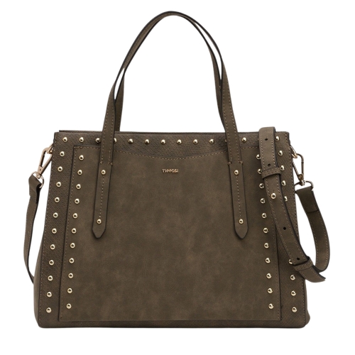 Maleta de ciudad con dos compartimentos y tachuelas. Bolsillo interior. Bandolera ajustable y extraíble. Cierre con cremallera.100% POLYURETHANE