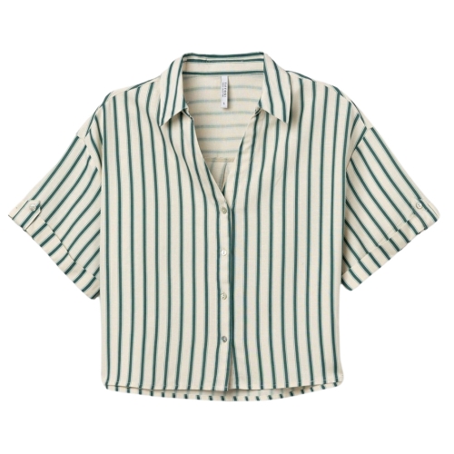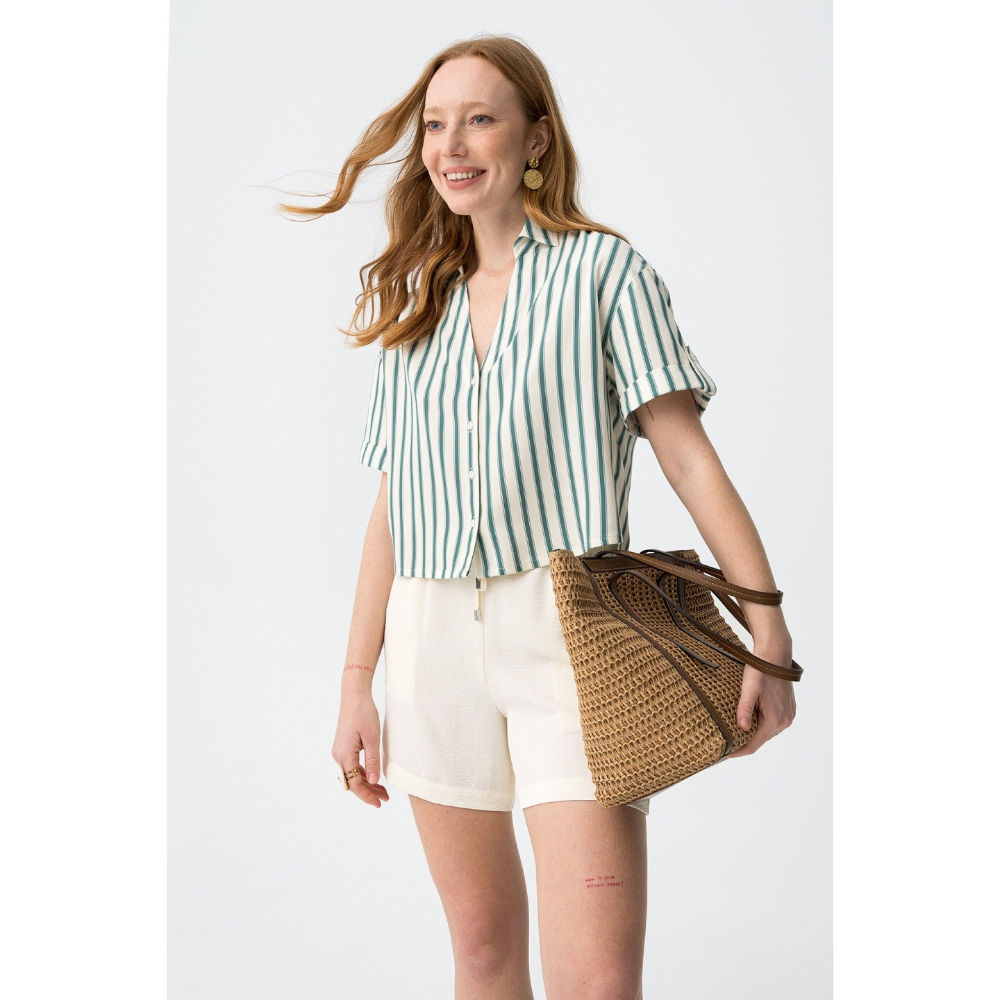 Camisa con corte cropped, manga corta y botones en color crudo, con estilo desenfadado oversize.90% VISCOSE 10% LINEN