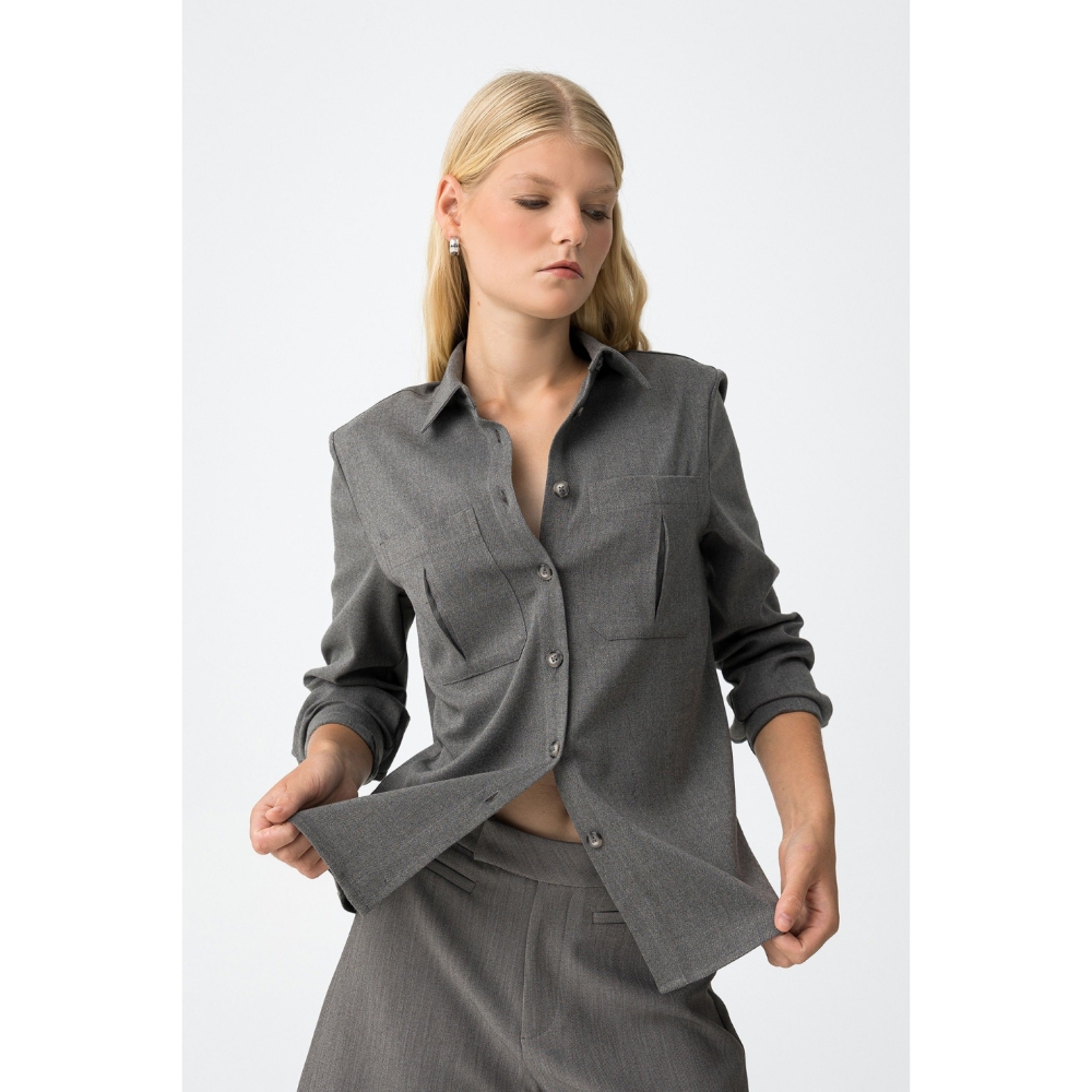 Camisa regular fit con dos bolsillos de parche, apertura frontal y cierre de botones. Cuello y manga larga con botones en los puños.64% POLYESTER 34% VISCOSE 2% ELASTANE